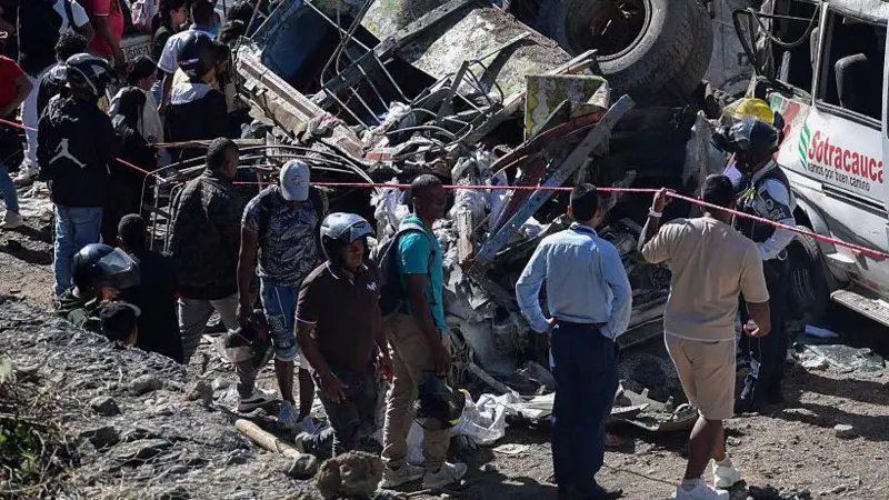 La explosión en la Vía Panamericana destrozó autobuses y furgonetas y volcó otros vehículos. Un cráter enorme se abrió en la autopista.