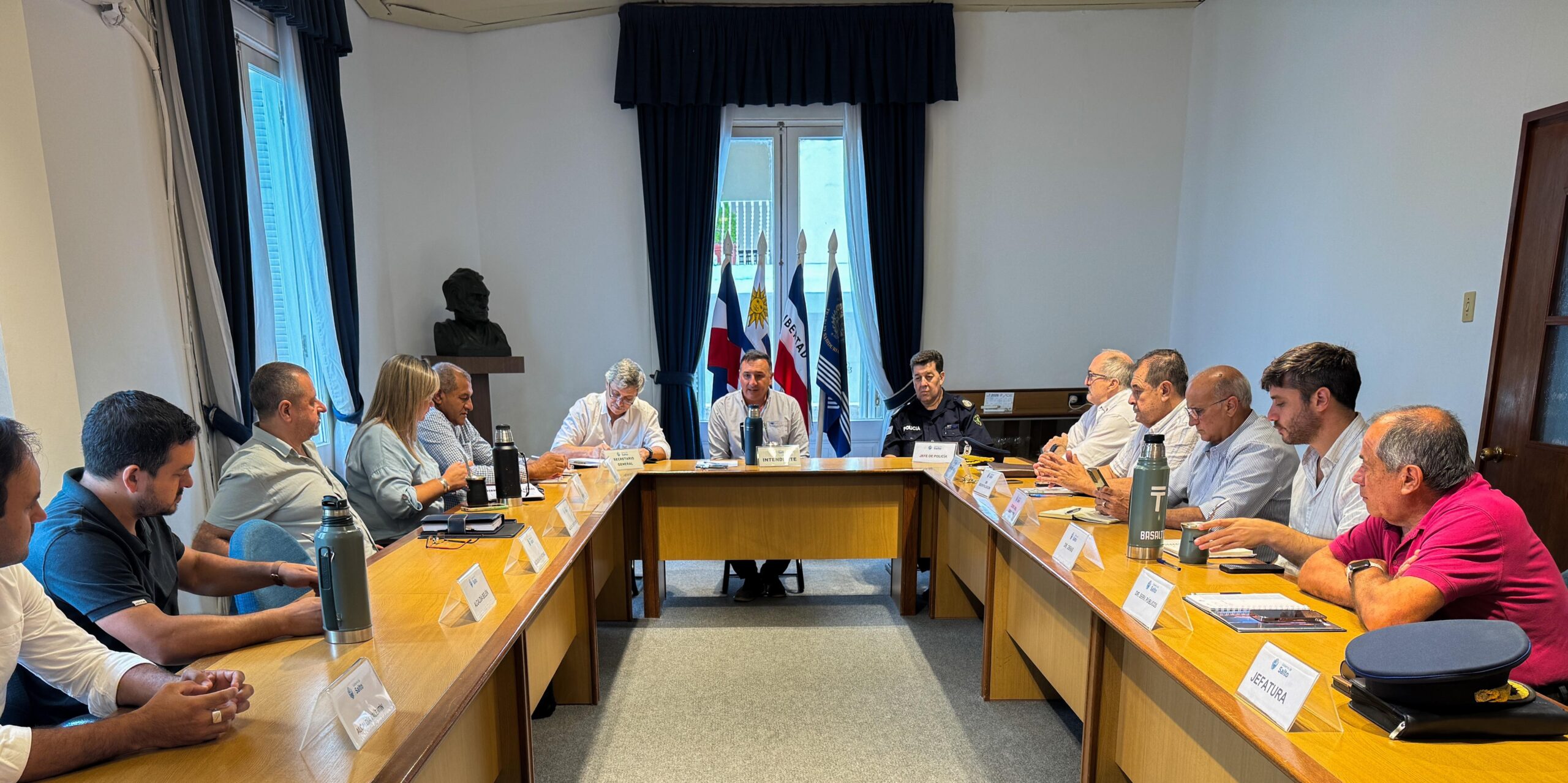 El intendente de Salto, Carlos Albisu, encabezó un gabinete ampliado junto a los seis alcaldes del departamento, representantes de organismos nacionales y el nuevo jefe de Policía de Salto, Comisario Mayor (R) Ernesto Cossio, a quien se le dio la bienvenida formal durante la instancia. La reunión tuvo como objetivo coordinar acciones y dar respuesta a las principales demandas del interior profundo.