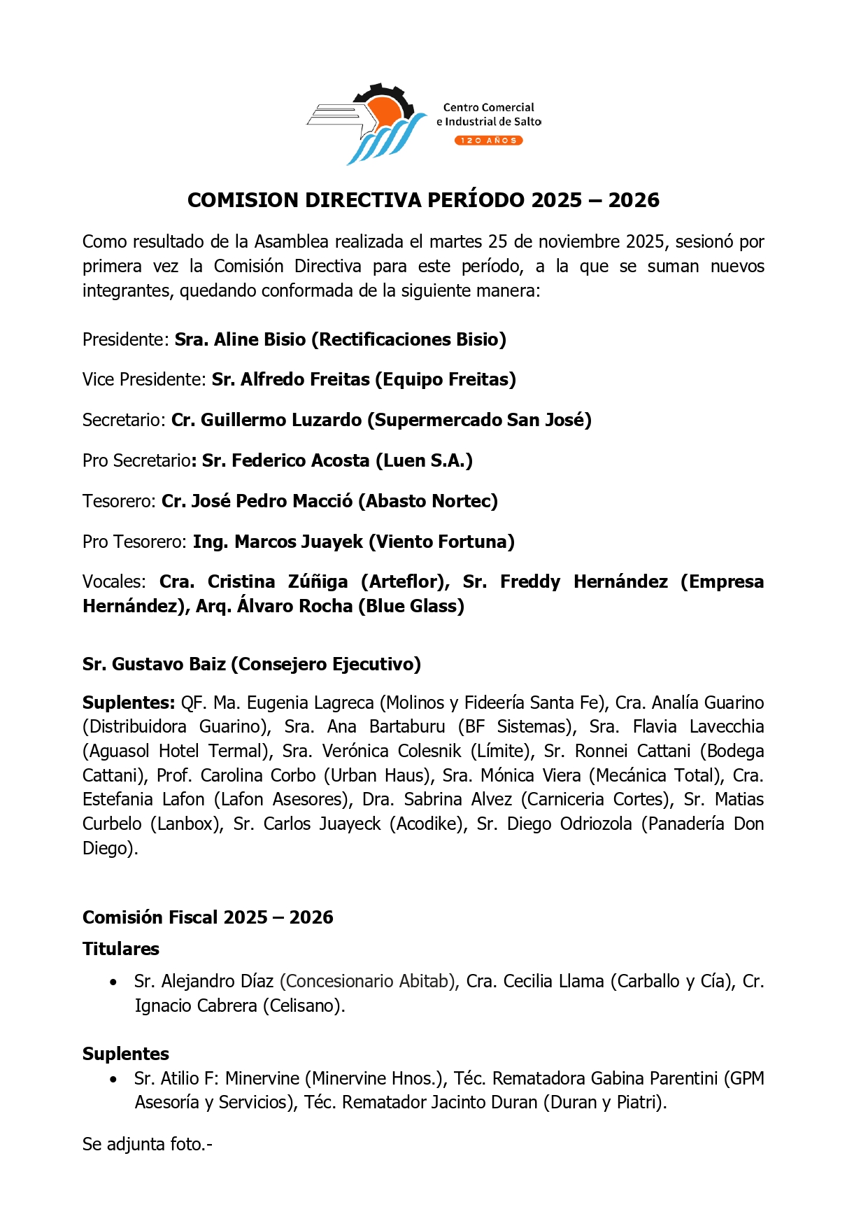 LOCALES / NOTICIASAline Bisio es la nueva presidenta del CCIS tras la Asamblea del 25 de noviembre 27 noviembre, 2025