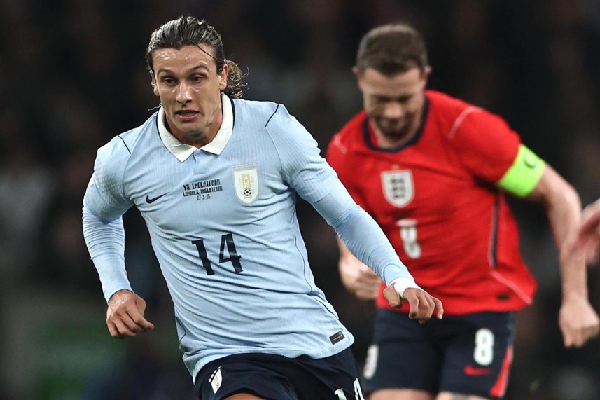 Y a los 11’ una pelota que cerró Joaquín Piquerez sobre la línea de fondo terminó con Madueke yendo al piso y cayendo sobre la pierna del jugador de Palmeiras que no pudo seguir, siendo sustituido por José María Giménez, que se metió como zaguero y Mathias Olivera pasó al lateral izquierdo.