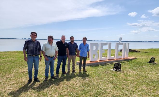 El secretario general de la Intendencia de Salto, Gustavo Chiriff, junto a los directores de Obras y Descentralización, Elbio Machado y Álvaro Gómez, el diputado Álvaro Lima y el alcalde del Municipio de Belén, Luis Enrique Zuliani, recorrieron las obras de mejoras viales realizadas en la capital municipal y avanzaron en la proyección de nuevas intervenciones de diversa índole en la localidad.
