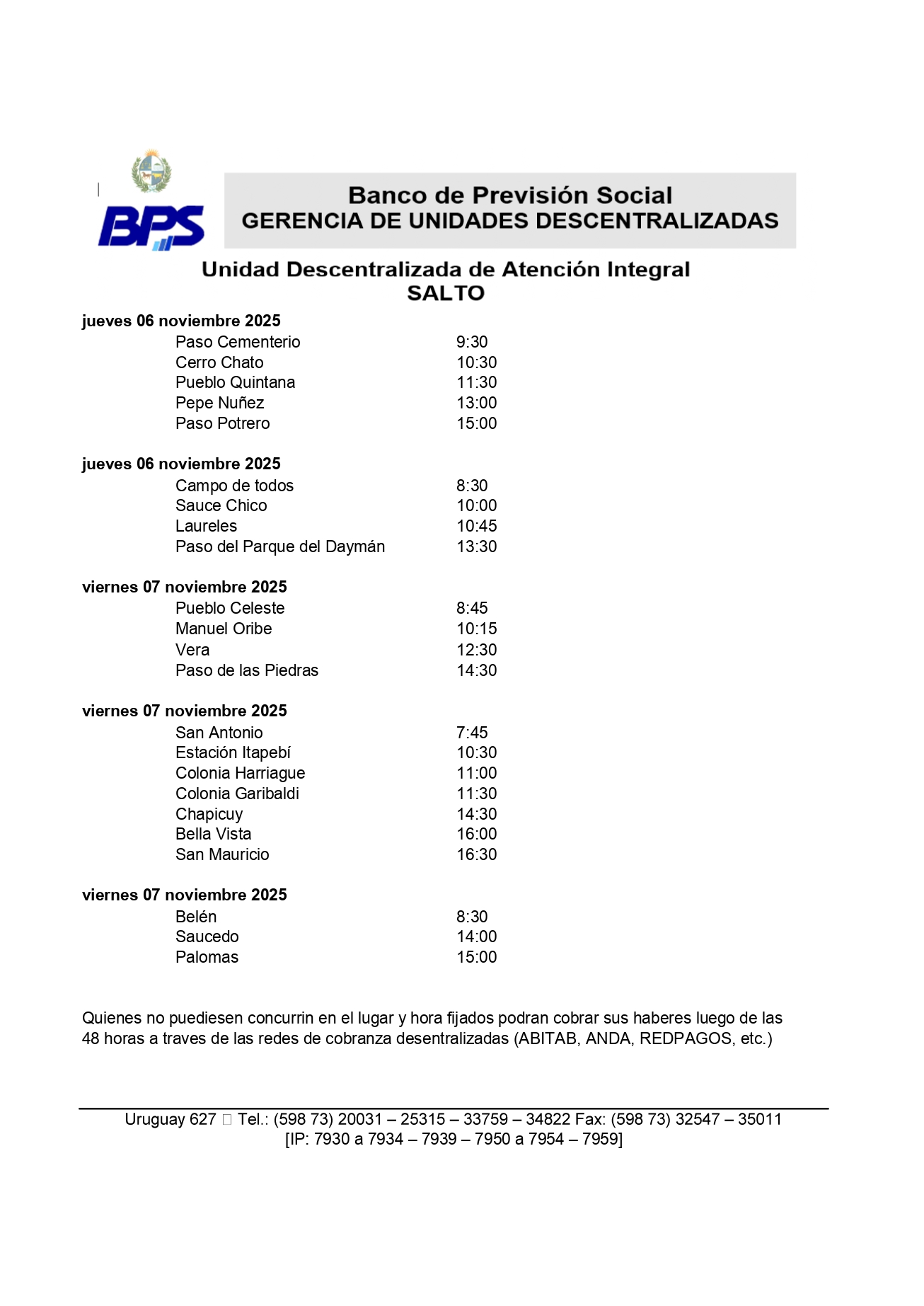 LOCALES / NOTICIAS / SERVICIOS A LA COMUNIDADCalendario de pagos del Banco de Previsión Social para el mes de noviembre 31 octubre, 20252 noviembre, 2025
