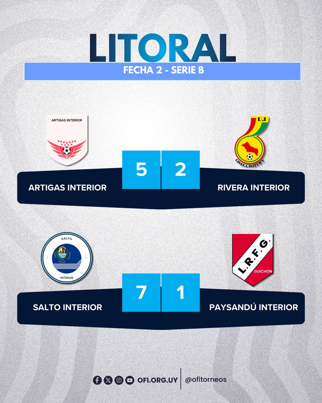 DEPORTESCampeonato del Litoral Sub-18: Liga Agraria goleó 7 a 1 a Guichón 21 enero, 202622 enero, 2026 Posiciones;: Liga Agraria 6, Bella Unión y Guichón 3 y Vichadero 0. En la próxima fecha la Liga Agraria visita a Vichadero y Bella Unión recibe a Guichón.