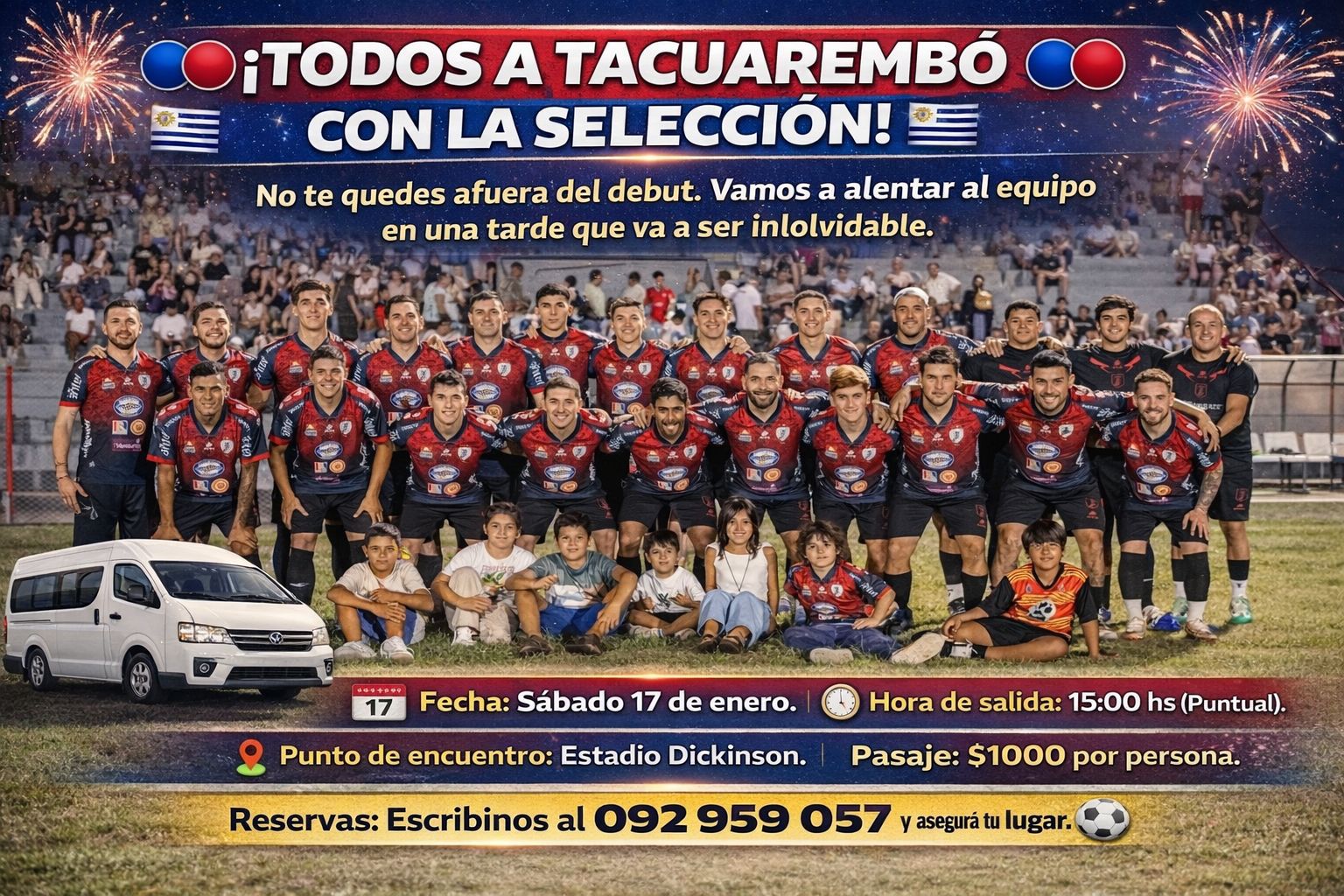 Se invita a la población a sumarse y acompañar a la Selección de Salto en su viaje a Tacuarembó, en lo que será una jornada especial marcada por el debut del equipo y el aliento de su gente.