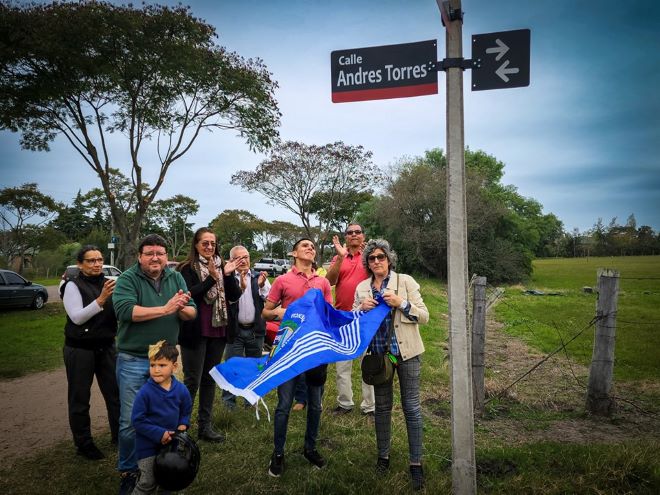 Con la presencia de autoridades departamentales, vecinos y amigos se realizó el acto protocolar de designación con el nombre de Andrés Torres a la calle ubicada paralela a avenida Pascual Harriague, esquina avenida Solari, en la zona de Nueva Hespérides.