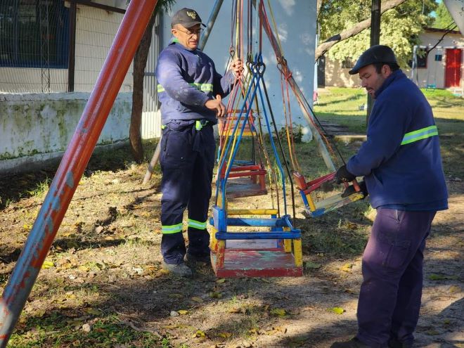 Las cuadrillas de Servicios Públicos trabajan arduamente en la reparación y renovación de los juegos infantiles, así como en la limpieza y el acondicionamiento general del espacio. Las tareas incluyen la pintura y restauración de hamacas, toboganes y juegos saludables, además de la mejora de las áreas verdes y la instalación de nuevos bancos y papeleras, informó el director del área, Mario Furtado. Este esfuerzo conjunto no solo embellece el entorno, sino que también garantiza la seguridad y funcionalidad de la placita.