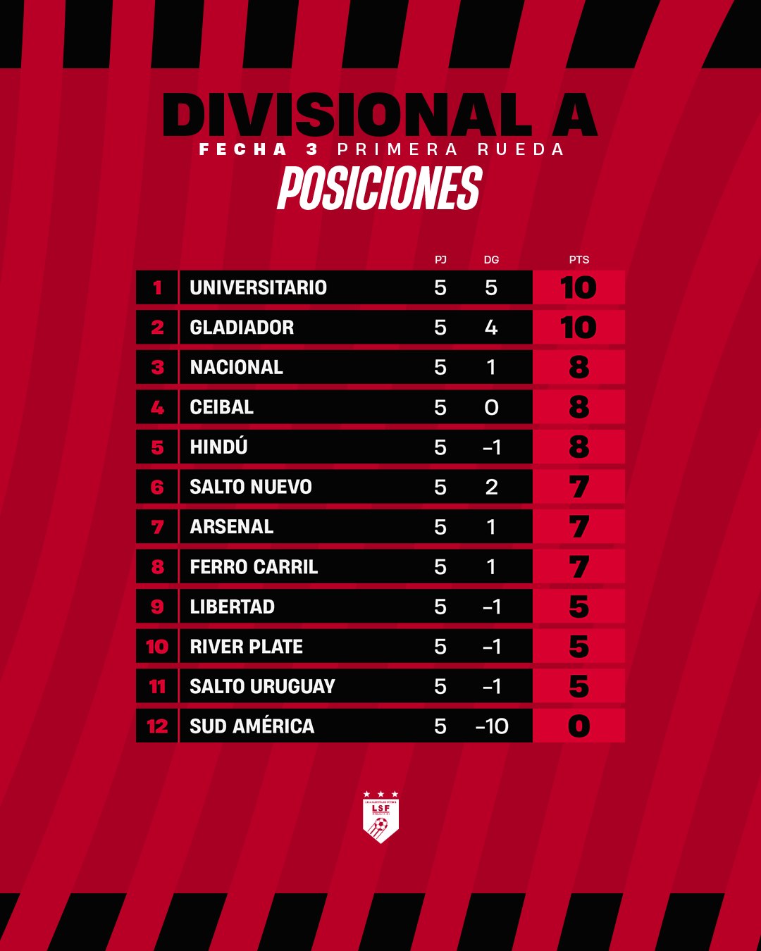 14:30 hrs. Libertad – S. América. Árbitros: José de los Santos, Andrés Píriz, Jonathan Guglielmone.