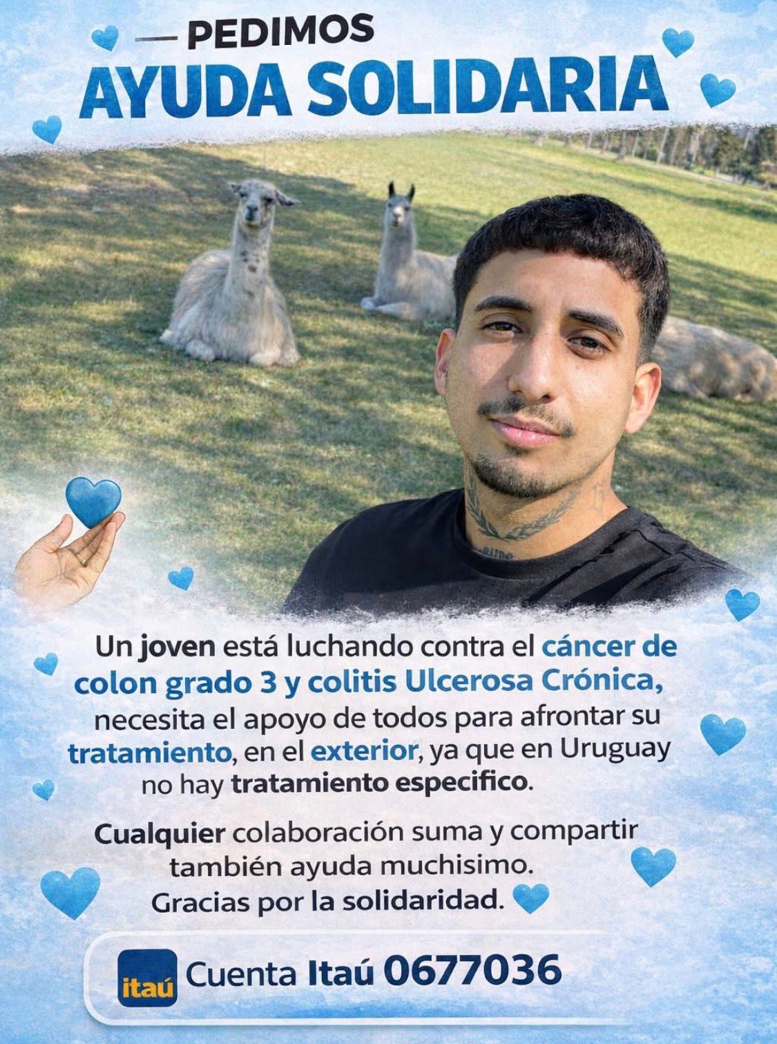 Eduardo, quien padece colitis ulcerosa crónica desde los 7 años, fue diagnosticado recientemente con cáncer de colon grado 3. Ante la necesidad de acceder a un tratamiento especializado en San Pablo que no está cubierto en Uruguay, solicita colaboración solidaria. Su motivación principal es recuperarse para poder estar bien y acompañar a su hija, apelando a la sensibilidad y apoyo de la comunidad.