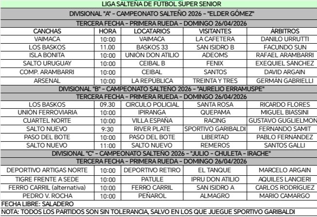 DEPORTESEl domingo se juega la tercera fecha de la Primera Rueda de la Liga de Fútbol Súper Senior 23 abril, 2026