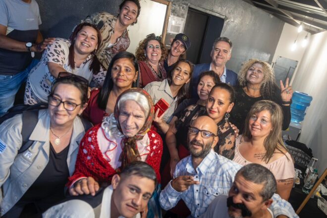 El elenco de teatro de la Unidad 20 del INR presentó la obra Esperando la Carroza en Montevideo, en el Museo del Carnaval, como parte de la muestra de los talleres desarrollados dentro del establecimiento, instancia en la que fueron saludados y reconocidos por el presidente de la República, Yamandú Orsi.