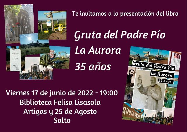 La sala de conferencias de la Biblioteca Felisa Lisasola será la sede para la presentación del libro en homenaje a los 35 años de la gruta del Padre Pío de La Aurora. La actividad, que tendrá lugar el viernes 17 de junio y que se iniciará a las 19:00, contará con la presencia del autor del trabajo, el periodista Eduardo Rodríguez, y con la participación de la comunicadora Melisa Ferradini, quien tuvo a su cargo la realización del prólogo del libro.
