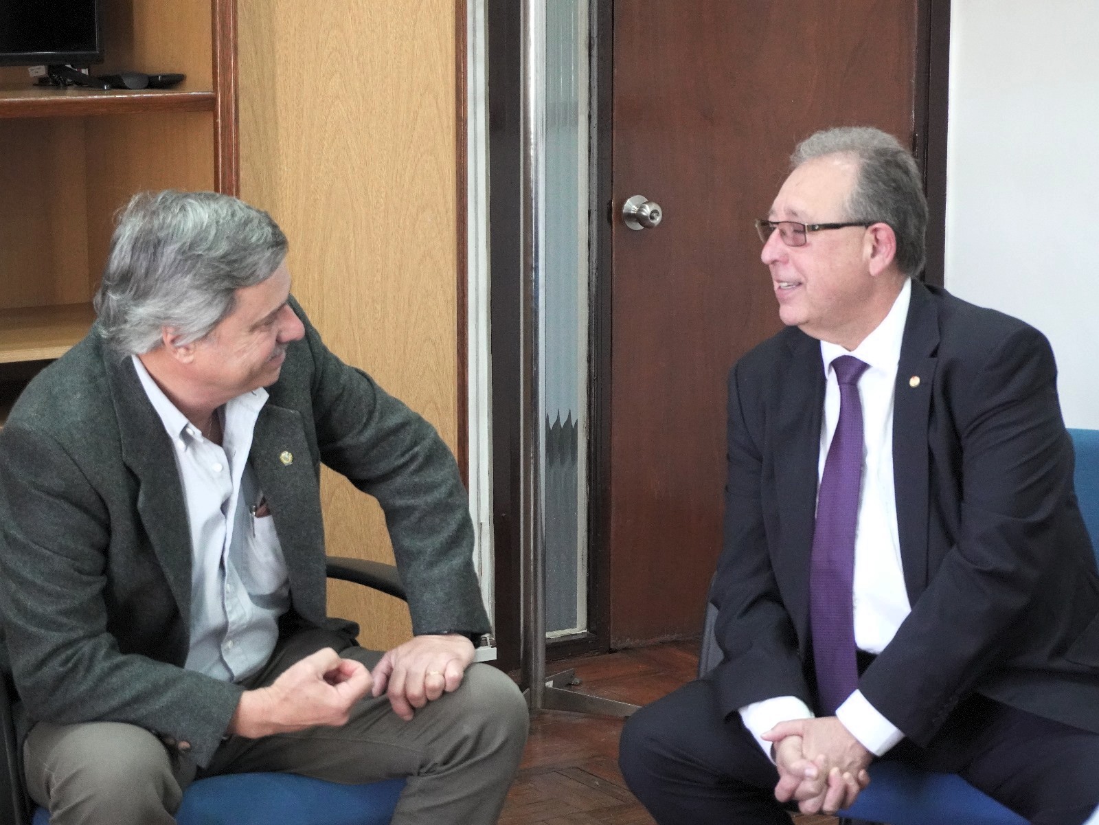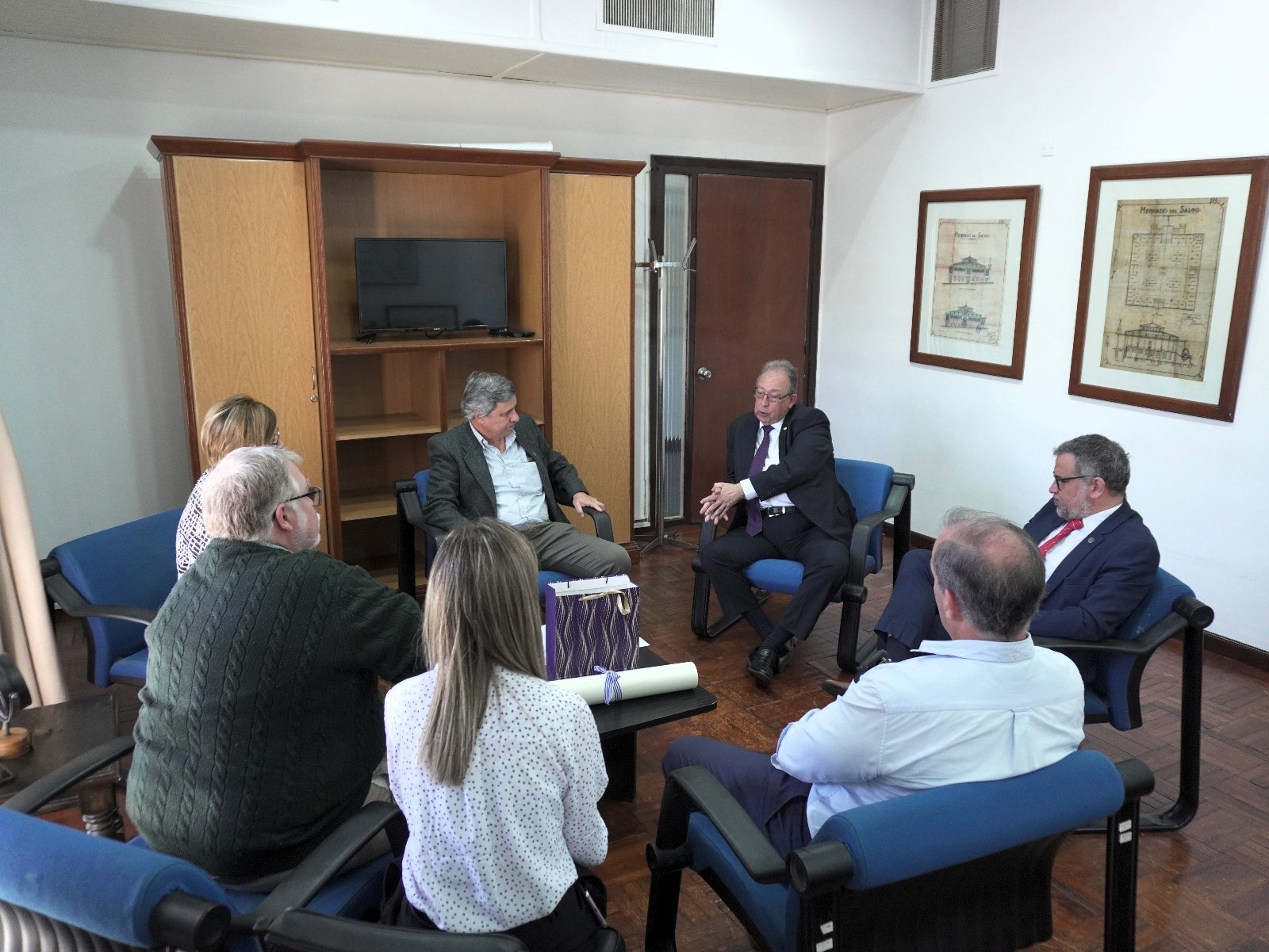 El secretario general de la Intendencia de Salto, Dr. Walter Texeira Núñez, acompañado por la directora de Gestión Administrativa, Esc. Myrna Haller, el coordinador de Cultura, Pablo Bonet, y el asesor legal, Dr. Héctor Ferreira, recibió al embajador de la República del Paraguay, Didier Olmedo, junto al primer secretario, Hugo Ferreira.