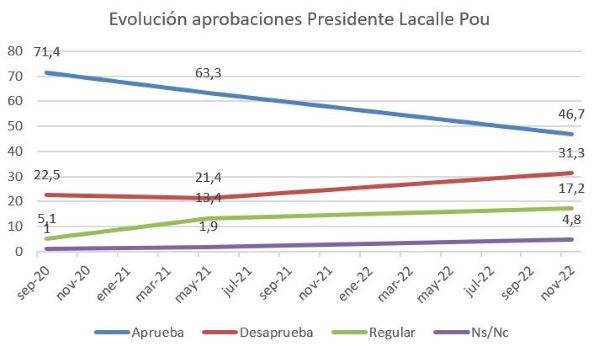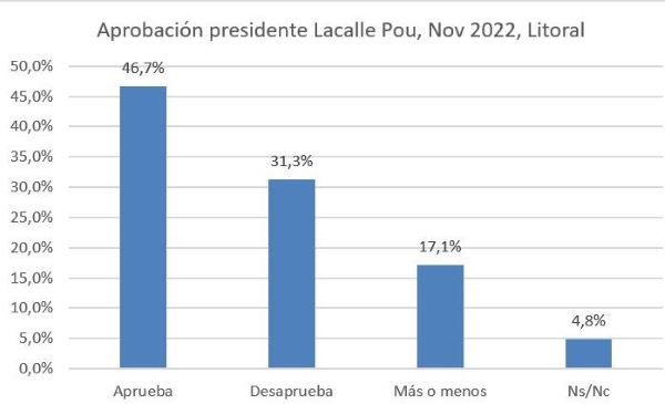 En lo que tiene que ver con la aprobación de la gestión del presidente Lacalle Pou, los resultados fueron los siguientes: