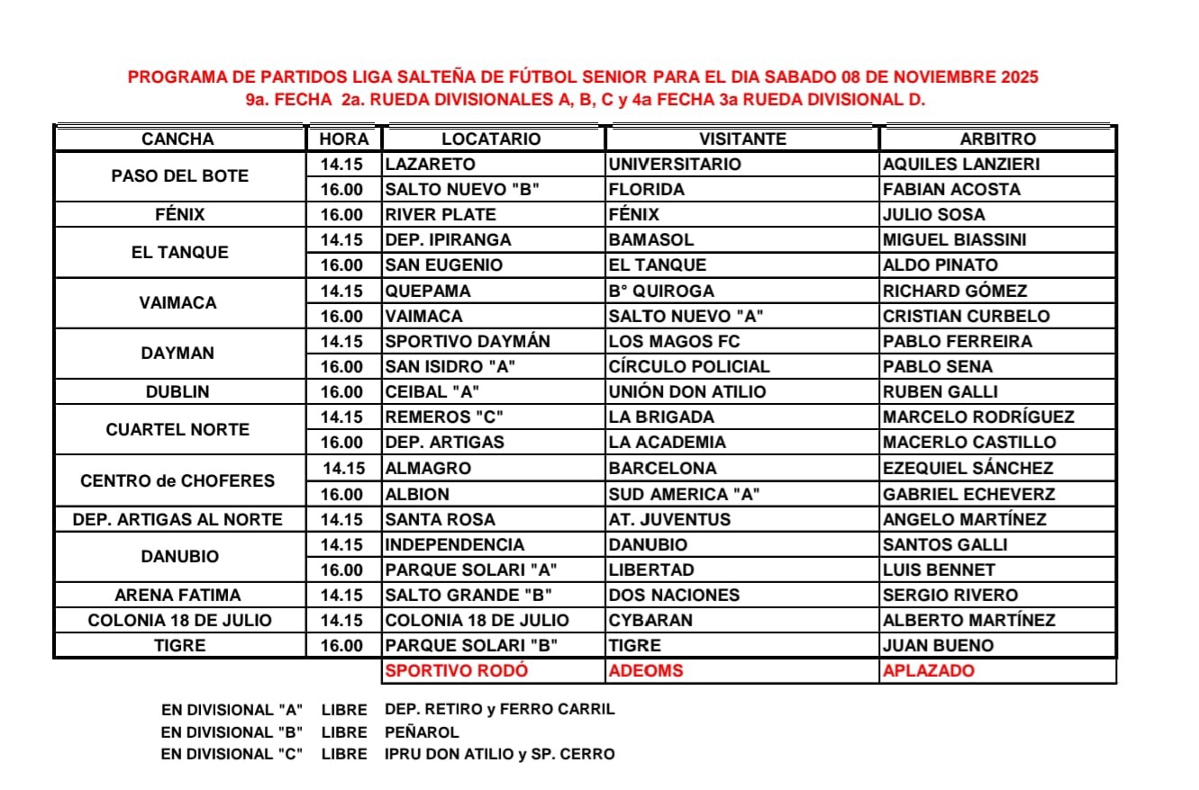DEPORTESEste sábado se juega una nueva fecha de la Liga de Fútbol Senior 4 noviembre, 20258 noviembre, 2025