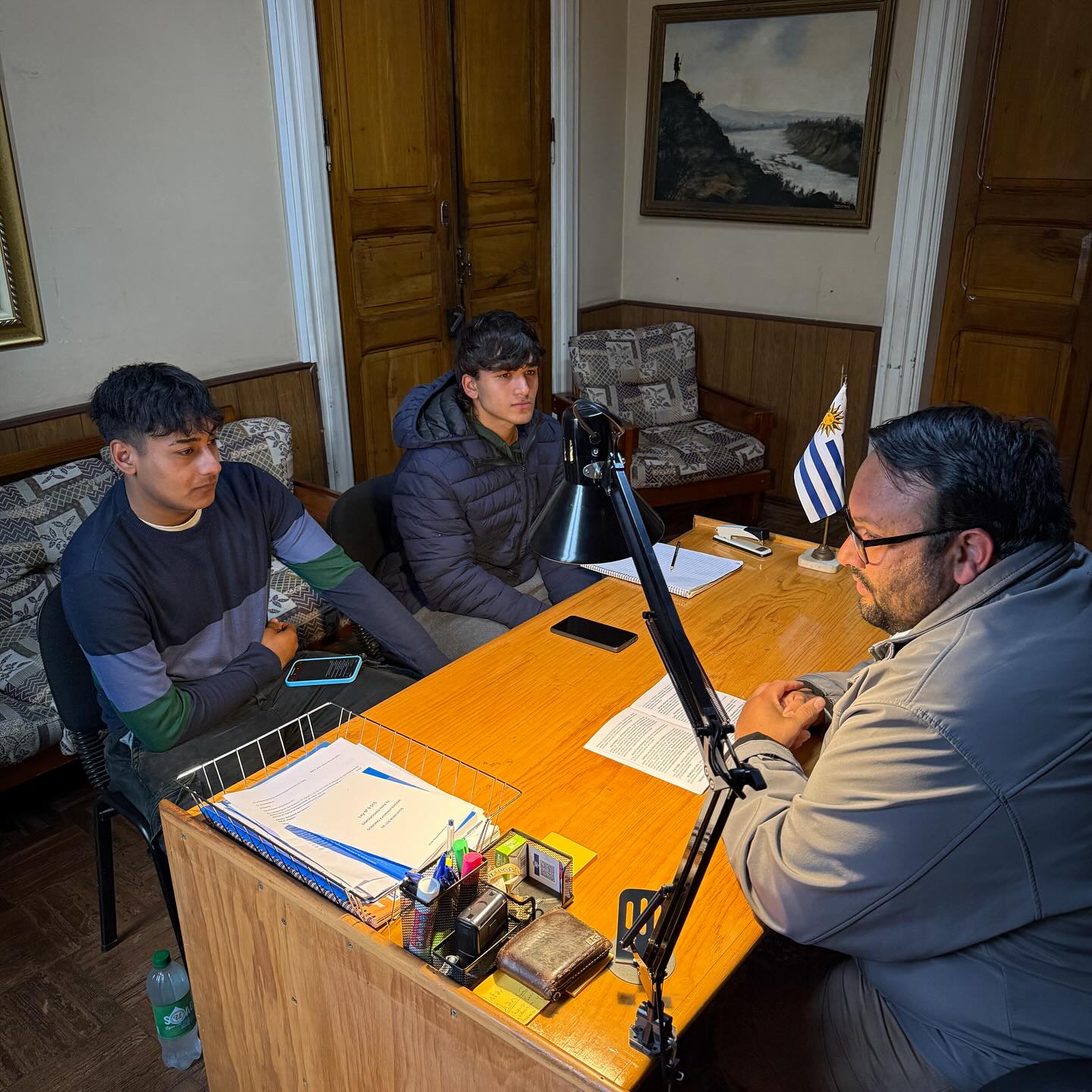 La Junta Departamental de Salto recibió la visita de los estudiantes Marcos Lalindre y Rubén Echevarría, de sexto año de Bachillerato del Liceo IPOLL.