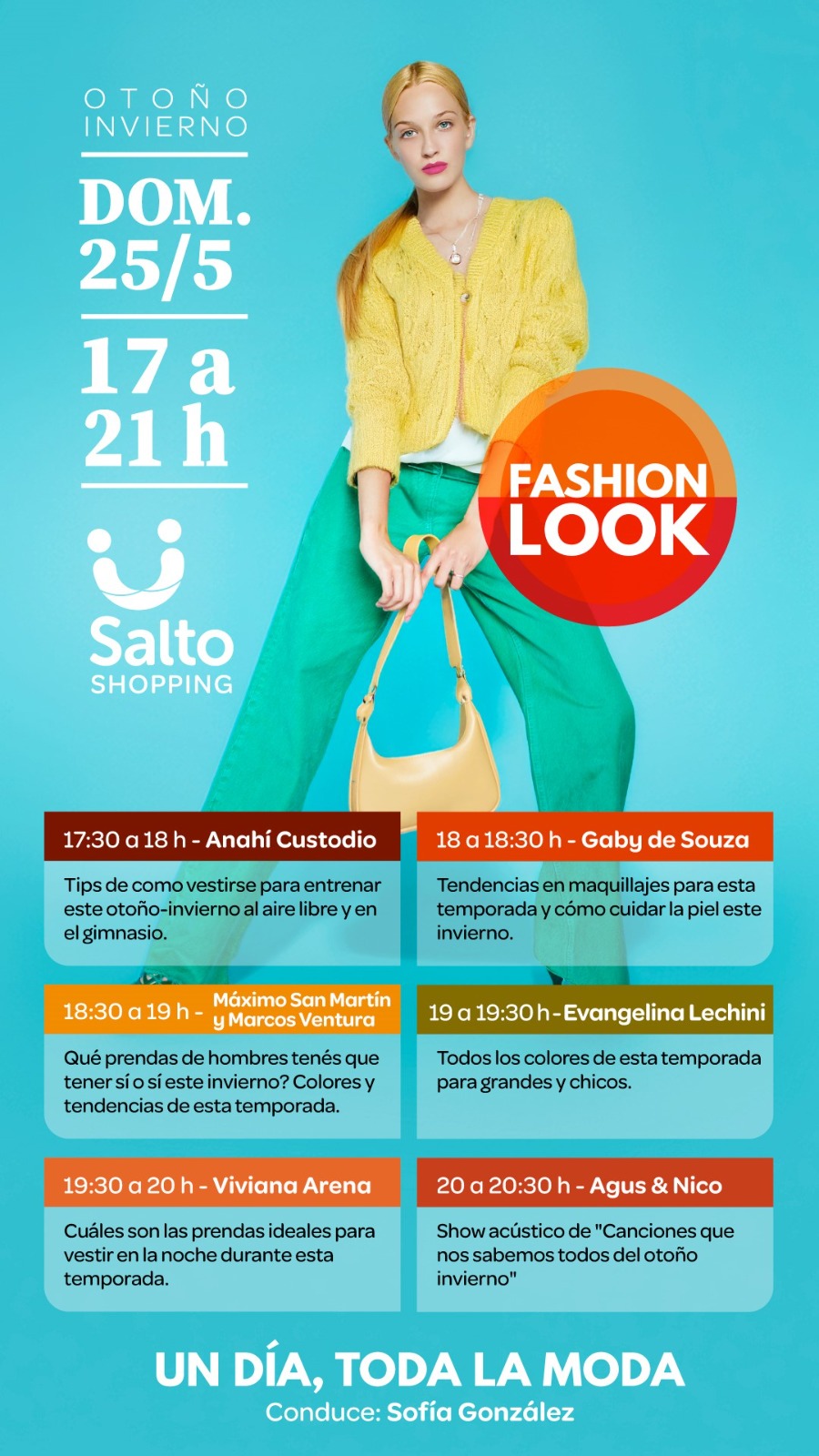 Realizaremos un evento con 6 presentaciones que estarán a cargo de personalidades conocidas en la ciudad. Ellos se encargarán de mostrar el cambio de temporada abarcando todos los rubros vinculados a vestimenta y calzado de Salto Shopping.