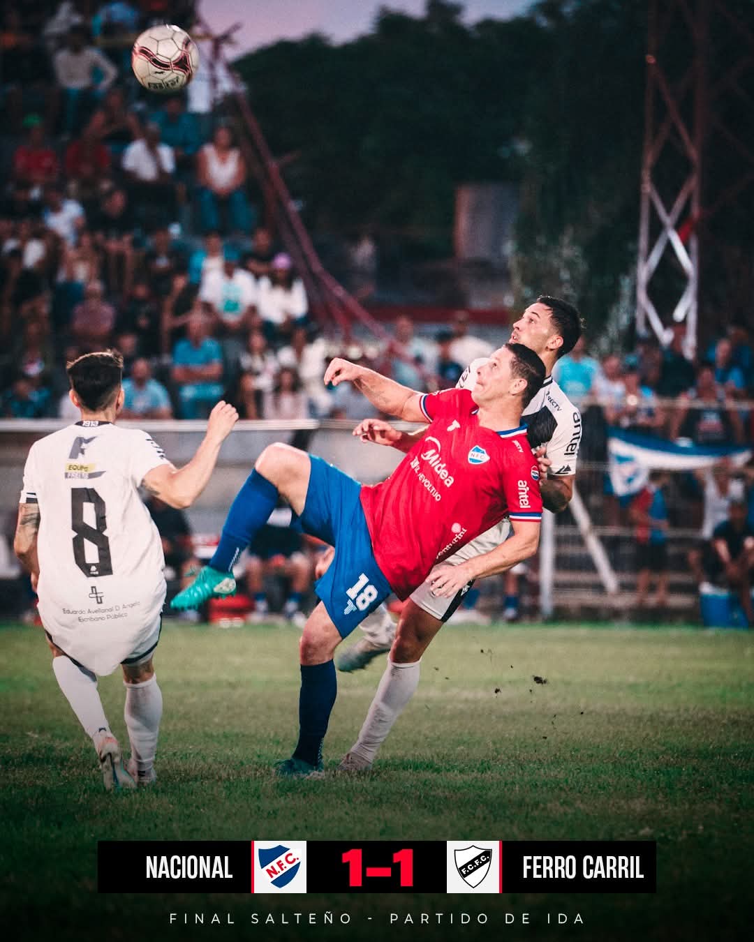 DEPORTESFerro Carril y Nacional empataron 1 a 1 en la Ida de las Finales 28 diciembre, 2025 FINAL | Partido de ida Nacional 1️⃣-1️⃣ Ferro Carril ✔️ Campeonato Salteño #DivisionalA2025