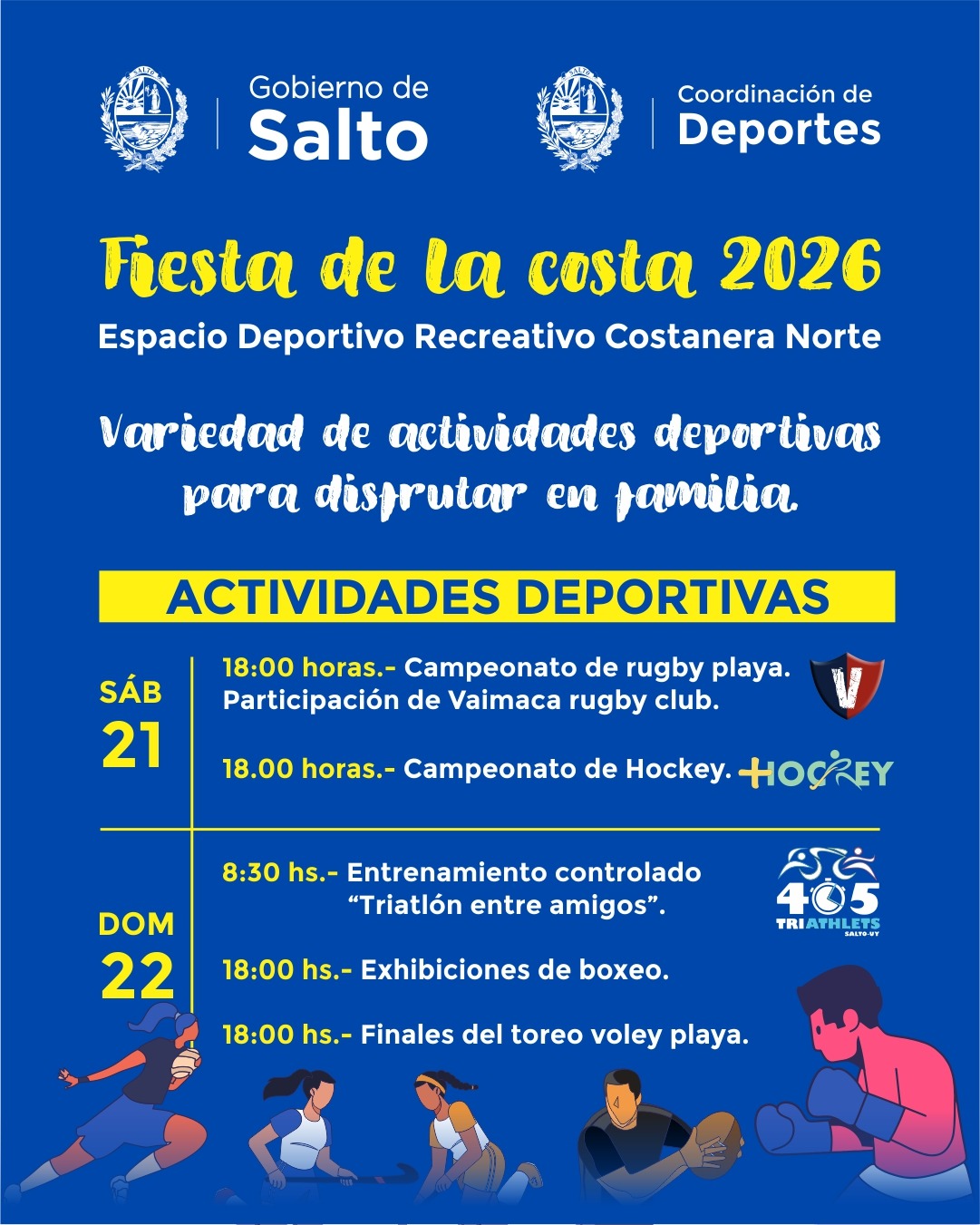 La invitación es abierta a toda la comunidad para acompañar y disfrutar de un fin de semana de deporte y recreación en la Costanera Norte, en el marco de la Fiesta de la Costa 2026.