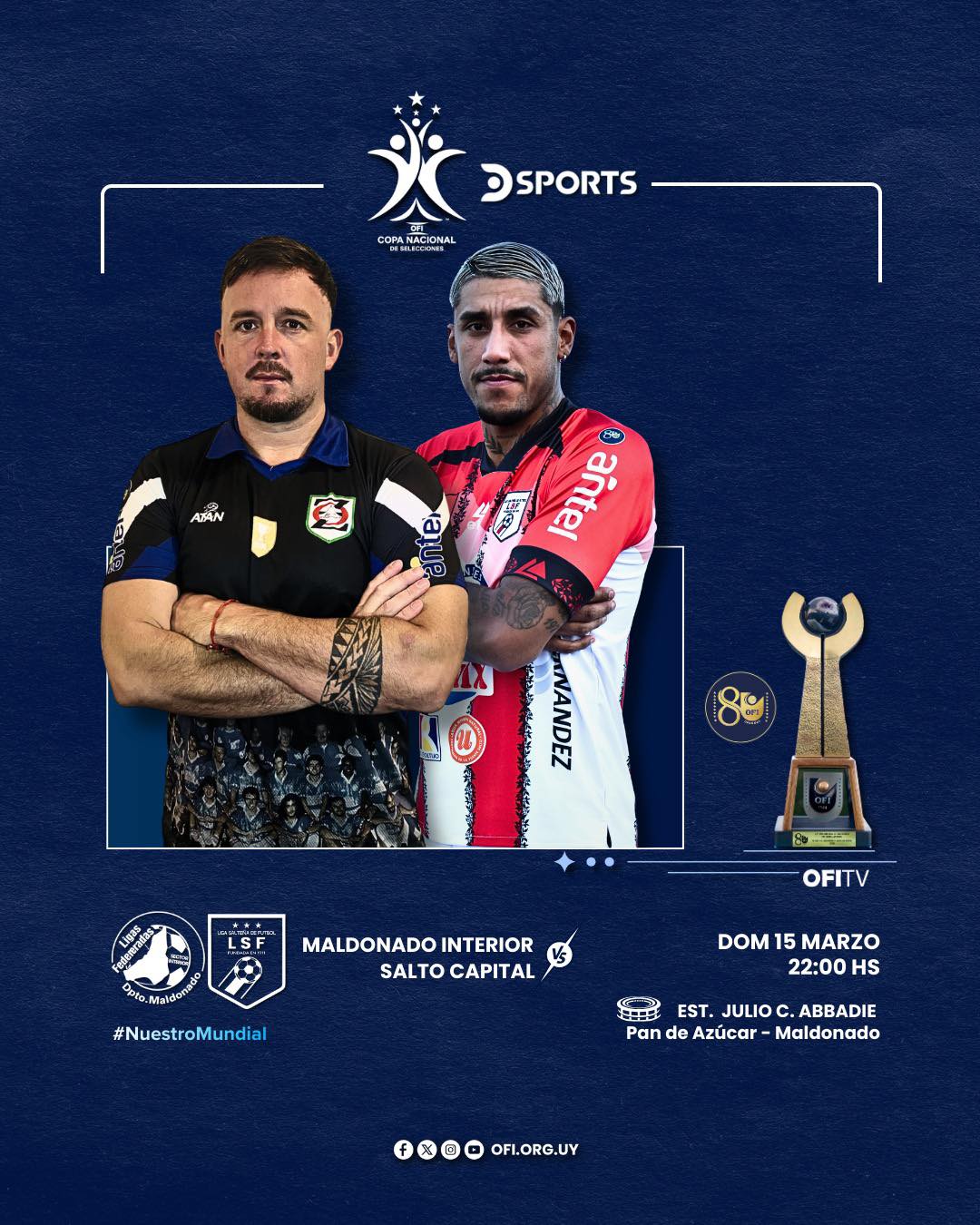 DEPORTESIda Cuartos de Final de la Copa Nacional de Selecciones: En Absoluta, Salto visita a Maldonado Interior 14 marzo, 2026 Fase Nacional – Cuartos de Final (Ida) Maldonado Interior Salto Capital @dsportsuy para todos los cables del interior en producción de #OFITV