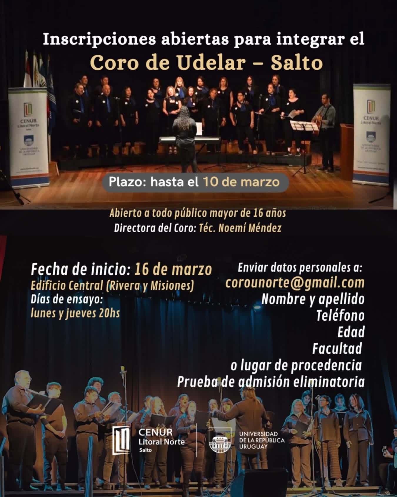 Para inscribirte, enviá tus datos personales (nombre y apellido, teléfono, edad, facultad o lugar de procedencia) a: corounorte@gmail.com