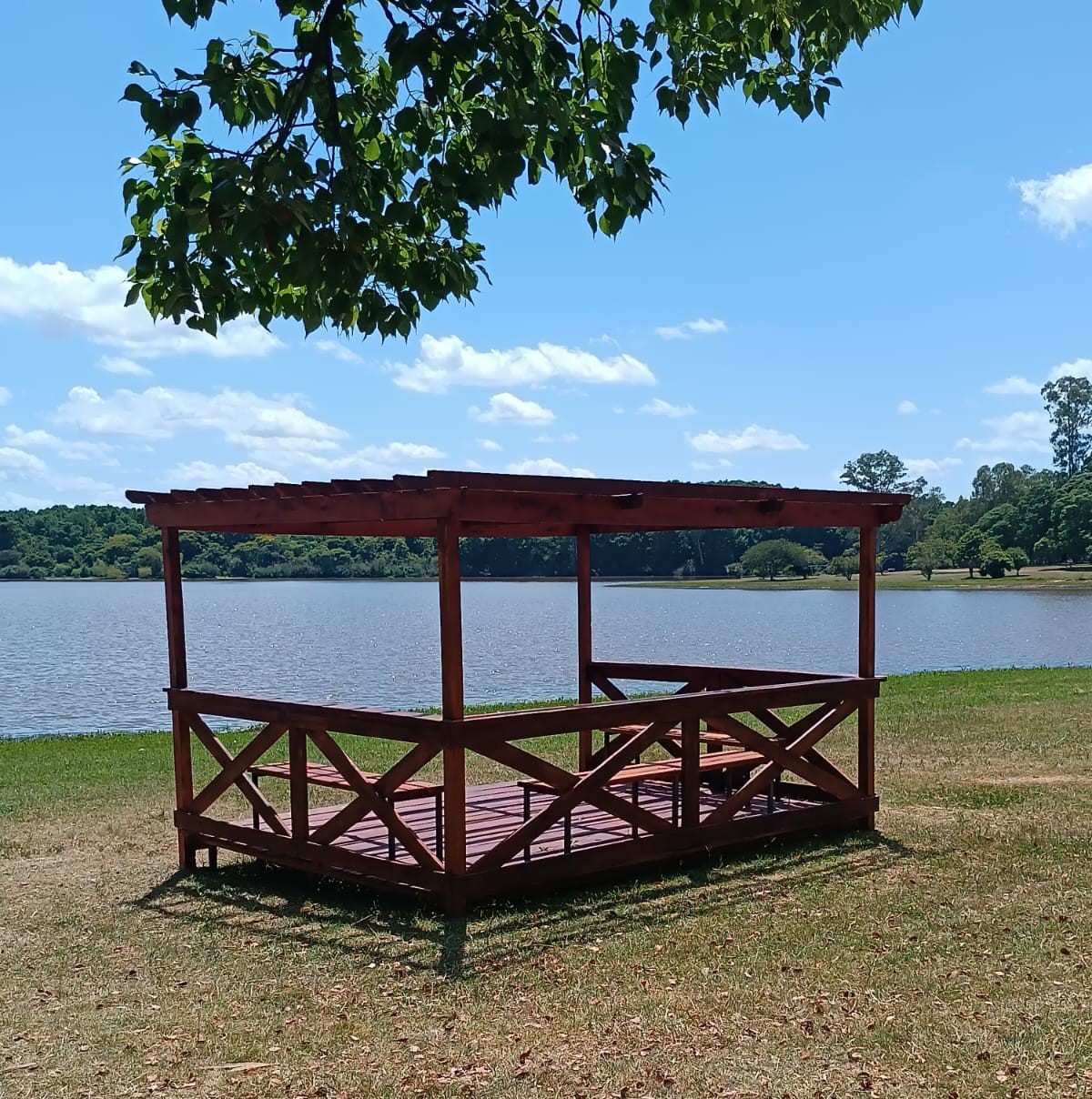 En ese marco, el sector Carpintería de Servicios Públicos llevó adelante la construcción de dos nuevas pérgolas con decks, que ya fueron instaladas en el Parque del Lago. Este viernes se colocaron los asientos, dejando los espacios prontos para el disfrute de vecinos y visitantes.