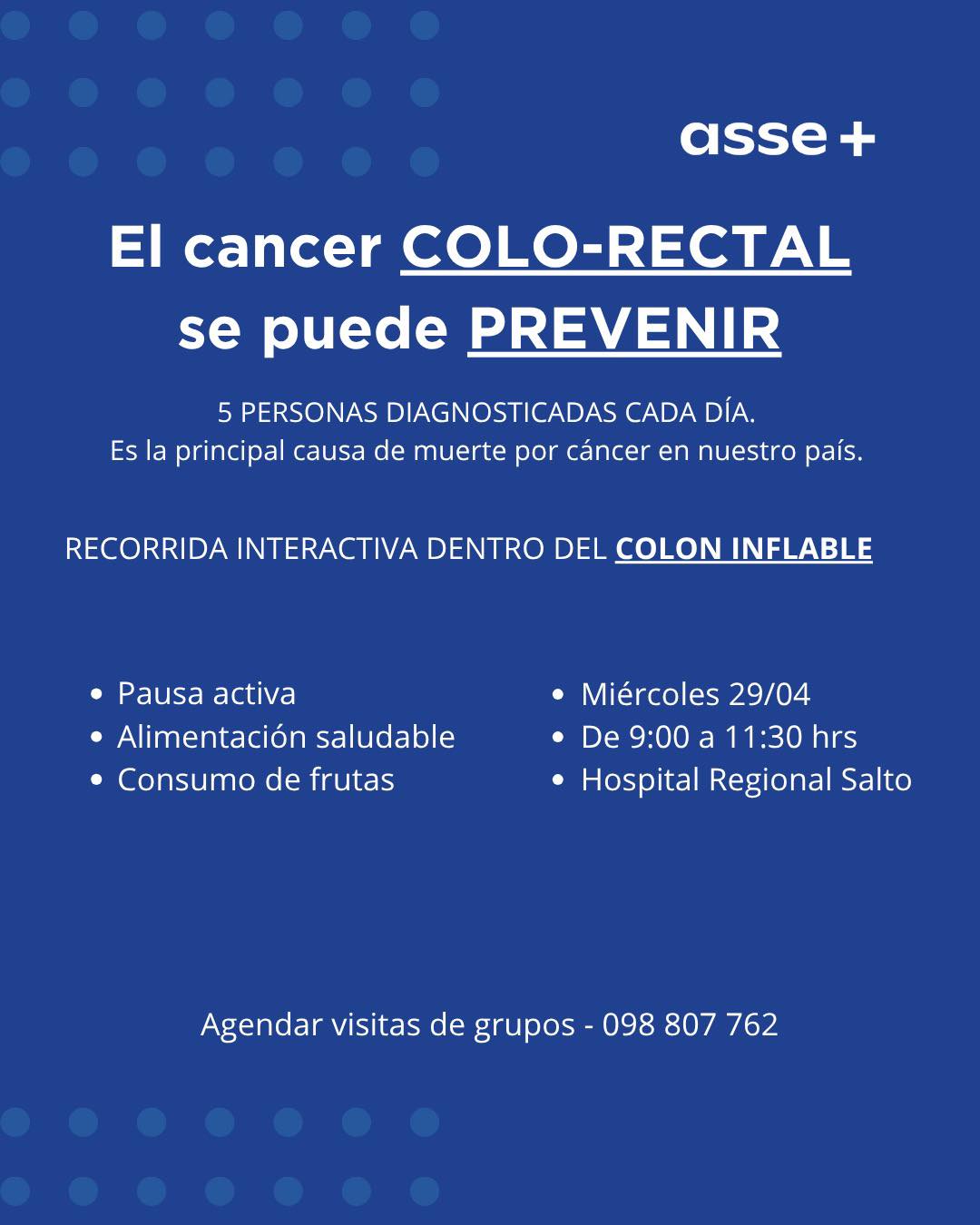 La actividad contará con una recorrida dentro de un colon inflable, donde se abordarán hábitos saludables vinculados a la alimentación, el consumo de frutas y la importancia de la actividad física como factores fundamentales en la prevención.