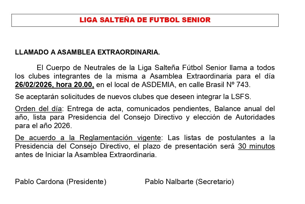 La Liga de Fútbol Senior llama a Asamblea Extraordinaria para este jueves