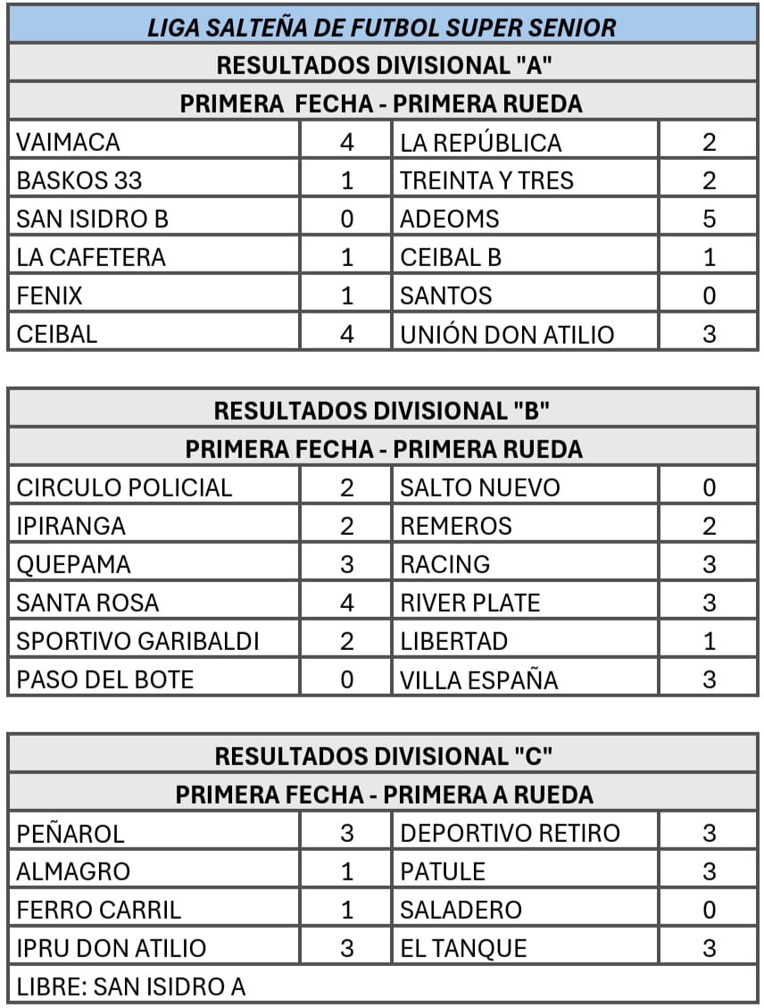Resultados y próxima fecha de la Liga de Fútbol Senior