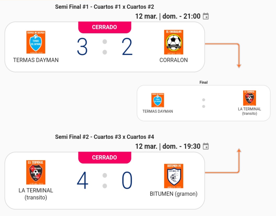 DEPORTESLa Terminal y Termas del Daymán jugarán la final del Campeonato de Fútbol Municipal 12 marzo, 202316 marzo, 2023 - Deja un comentario