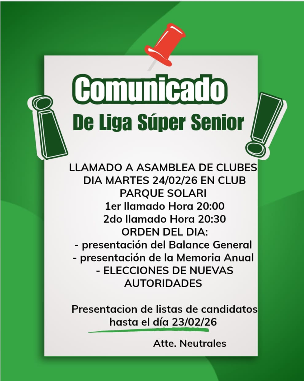 Liga de Fútbol Súper Senior convoca a Asamblea