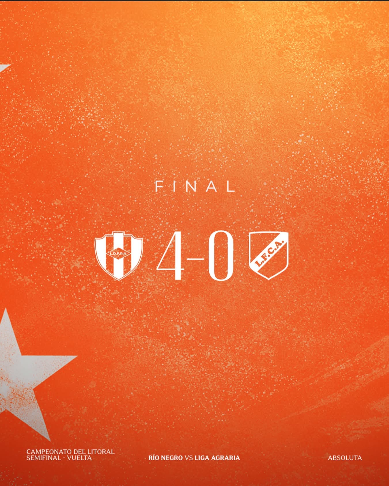 DEPORTESLitoral: Liga Agraria cayó ante Río Negro y no pudo llegar a las finales 21 febrero, 2026 Mayores Litoral Semifinal vuelta : Rio Negro 4 – Liga Agraria 0 , ida 1-0. Rio Negro Finalista.