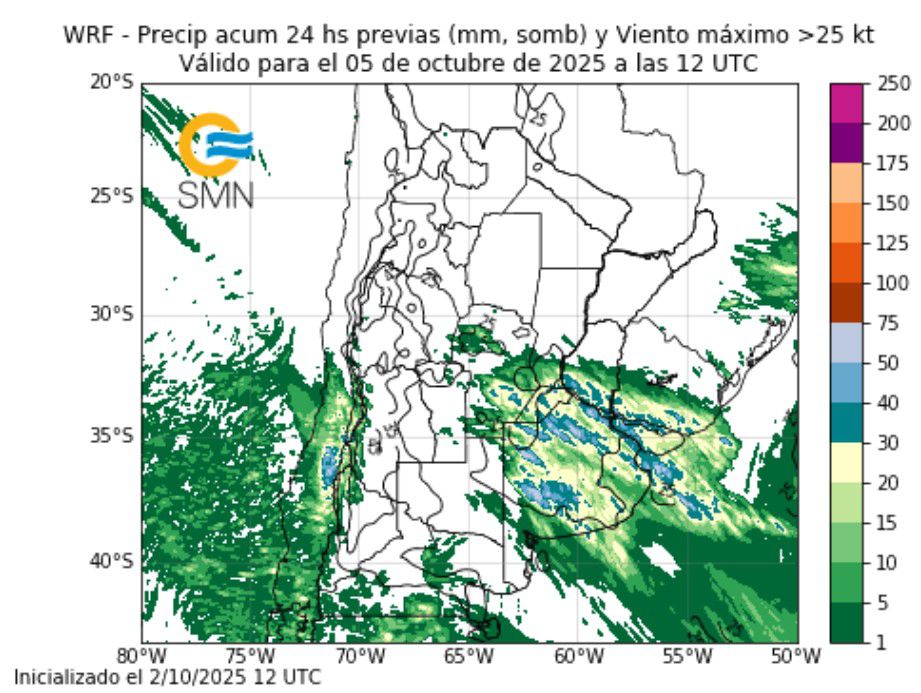 Por su parte, el Servicio Meteorológico Nacional de Argentina también advierte por consecuencias similares. En ese caso, se puntualiza que las zonas más afectadas serán Buenos Aires, el este de La Pampa y Río Negro, el sur y este de Córdoba y el centro y sur de Santa Fe y Entre Ríos.