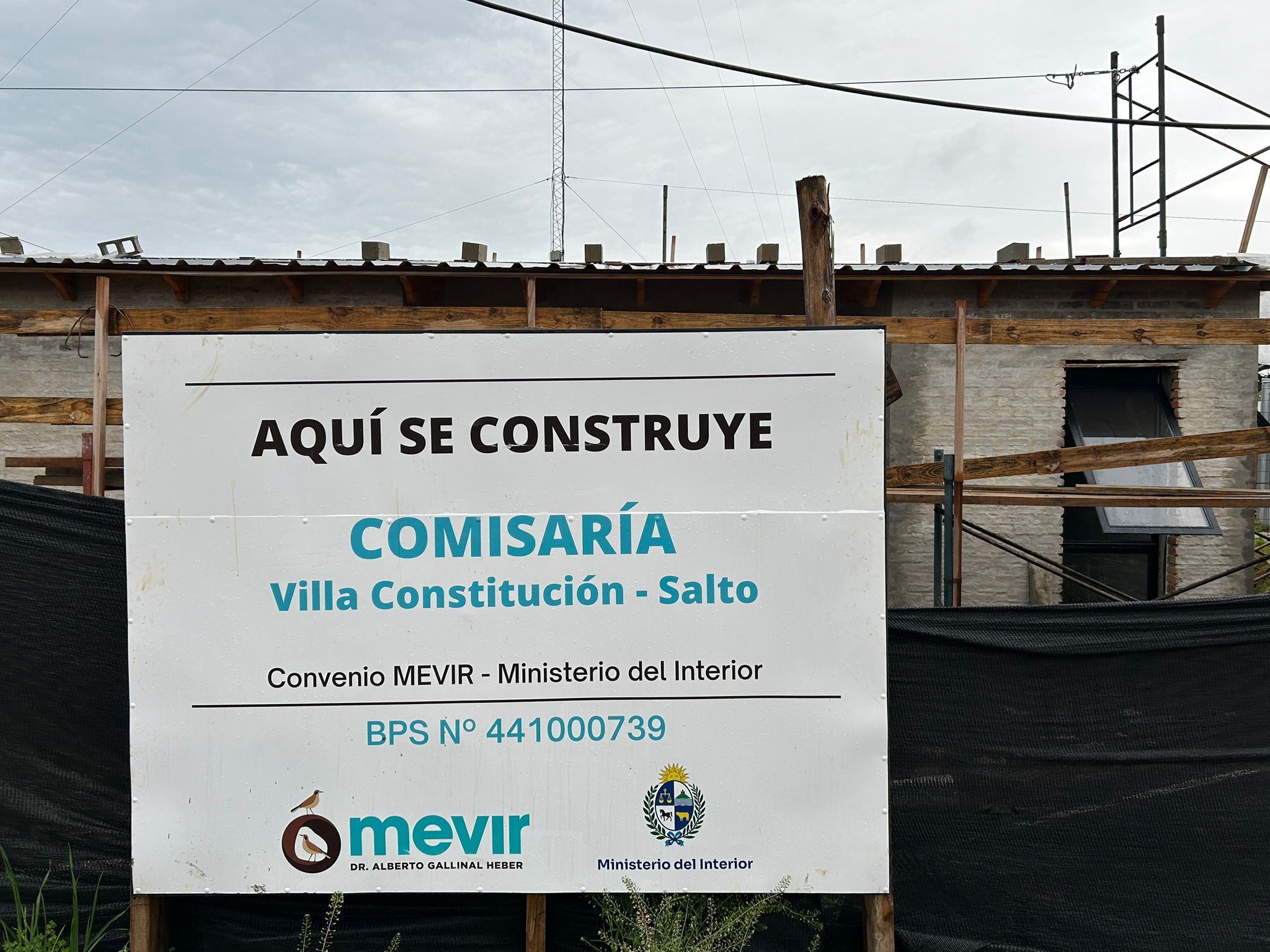 A través de un convenio interinstitucional con el Ministerio del Interior, MEVIR se encuentra trabajando desde el mes de febrero, en la reconstrucción a nuevo de la Comisaría de Villa Constitución, en el departamento de Salto. El proyecto permitirá dotar a la localidad de una infraestructura moderna, segura y funcional para el cumplimiento de las tareas policiales y de atención a la población.