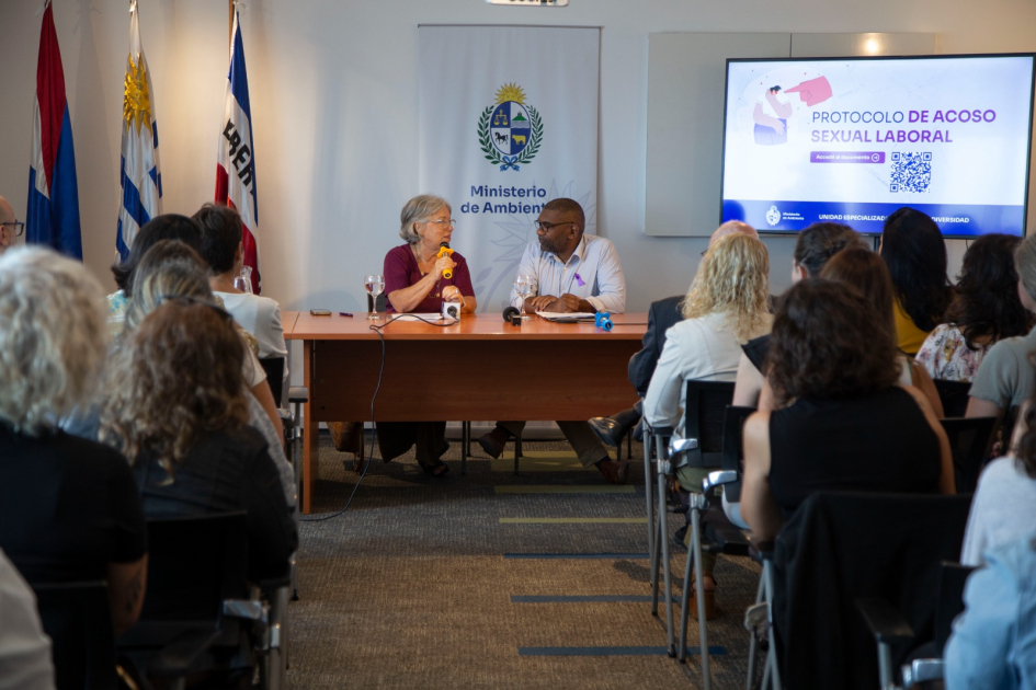 El nuevo protocolo de actuación ante situaciones de acoso sexual y laboral, del Ministerio de Ambiente, define procedimientos y promueve la formación en la materia, así como las medidas de protección. El documento fue presentado este viernes 6 por el titular de la cartera, Edgardo Ortuño, y la directora de Inmujeres, Mónica Xavier.