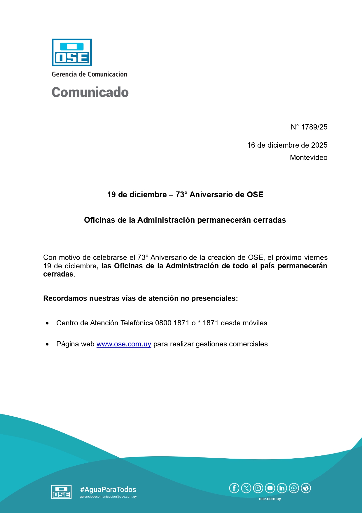 LOCALES / NOTICIASOSE informa que sus oficinas permanecerán cerradas el viernes 19 de diciembre por su 73.º aniversario 16 diciembre, 2025
