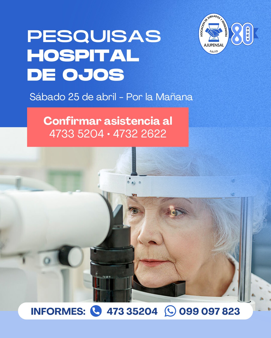 Los médicos oftalmólogos del Hospital de Ojos llevarán a cabo pesquisas el sábado 25 de abril, en horas de la mañana, en nuestra sede ubicada en Varela 1051.