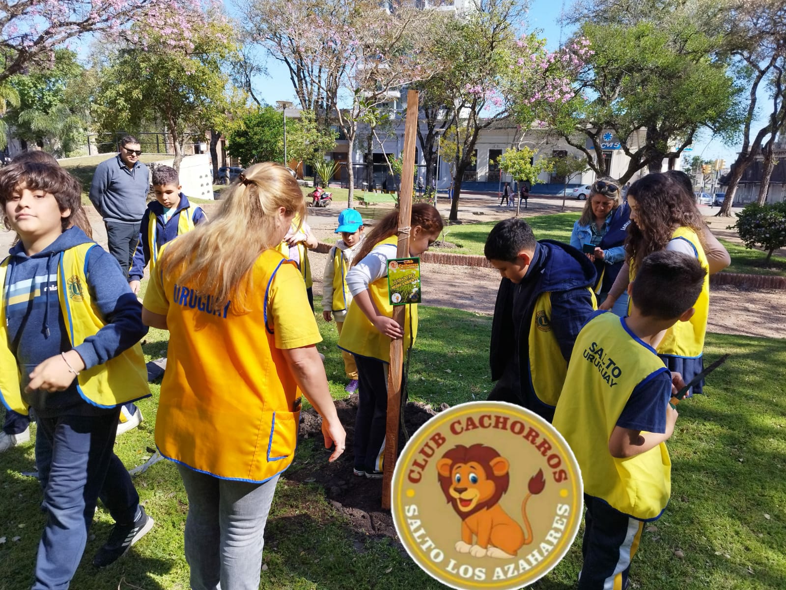El Club de Leones Salto Los Azahares, en colaboración con el Club Cachorros Salto Los Azahares y los Clubes Leos Salto Oriental y Los Azahares, se unieron el pasado 12 de octubre en Plaza Artigas para llevar a cabo una significativa plantación de tres árboles autóctonos, junto al departamentodeServiciosPúblicos de la Intendenciade Salto. Esta iniciativa es parte del compromiso sostenido de estos niños y jóvenes con el cuidado del medio ambiente, una causa global respaldada por Lions International.