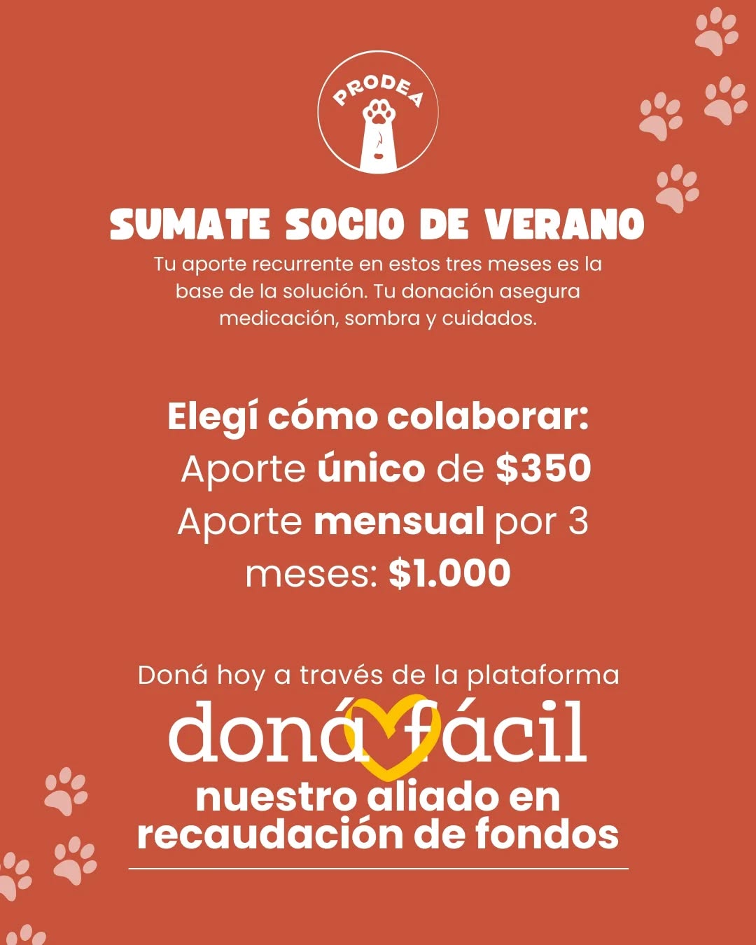 En este contexto, la Fundación PRODEA apela a la solidaridad de la comunidad para continuar brindando sombra, agua y atención veterinaria a los perros que se encuentran en el refugio, especialmente durante la temporada estival.