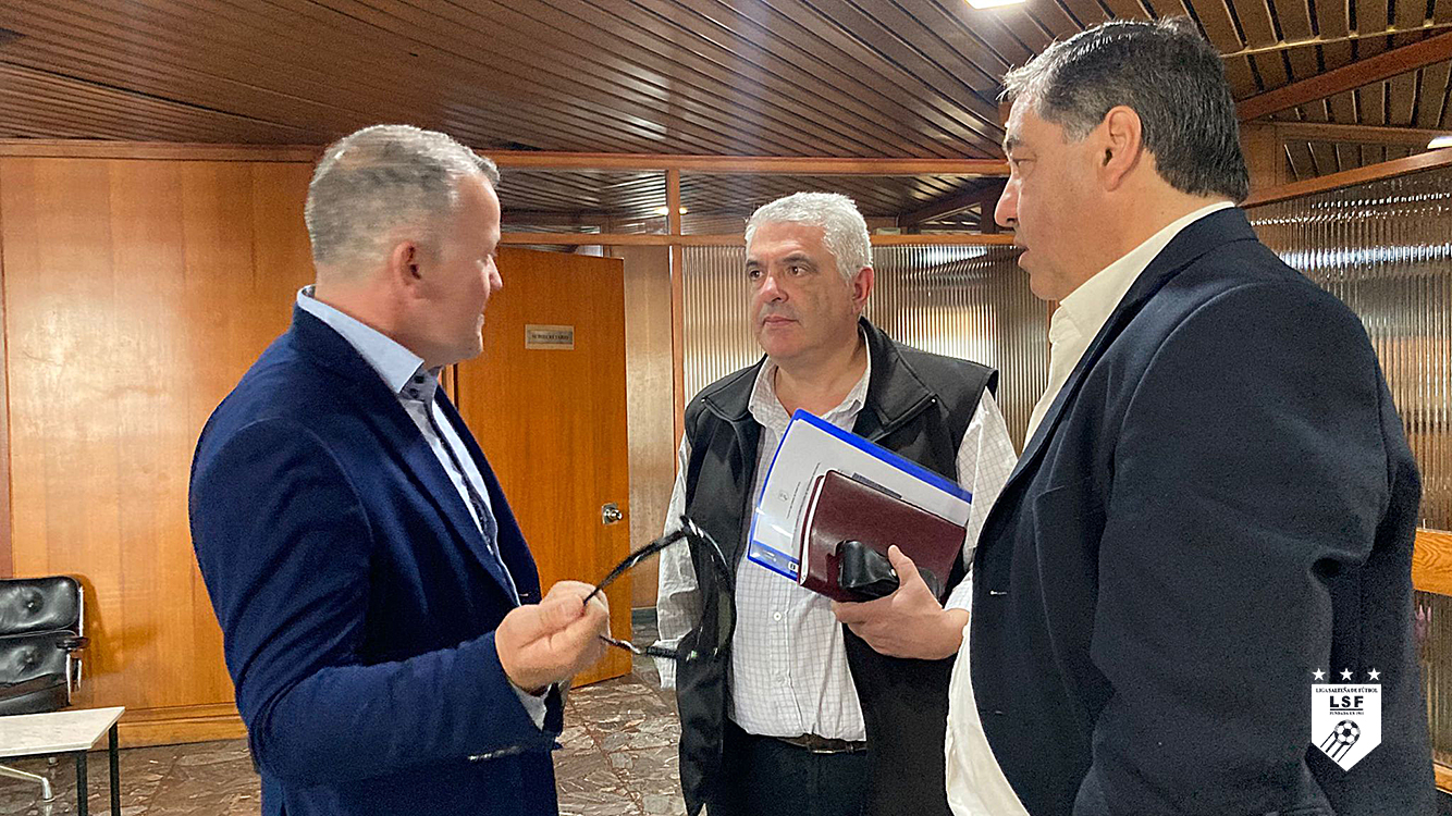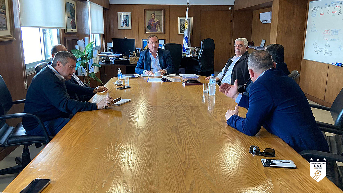 Tras la visita al Complejo Celeste, los miembros del cuerpo de neutrales de la LSF fueron cordialmente recibidos en la capital del país durante esta tarde, en la sede del Ministerio de Transportes y Obras Públicas (MTOP), por el Ministro José Luis Falero. Durante el encuentro, el Ministro manifestó su entusiasta apoyo para dar continuidad a la serie de reformas que se están llevando a cabo en el Estadio Ernesto Dickinson.