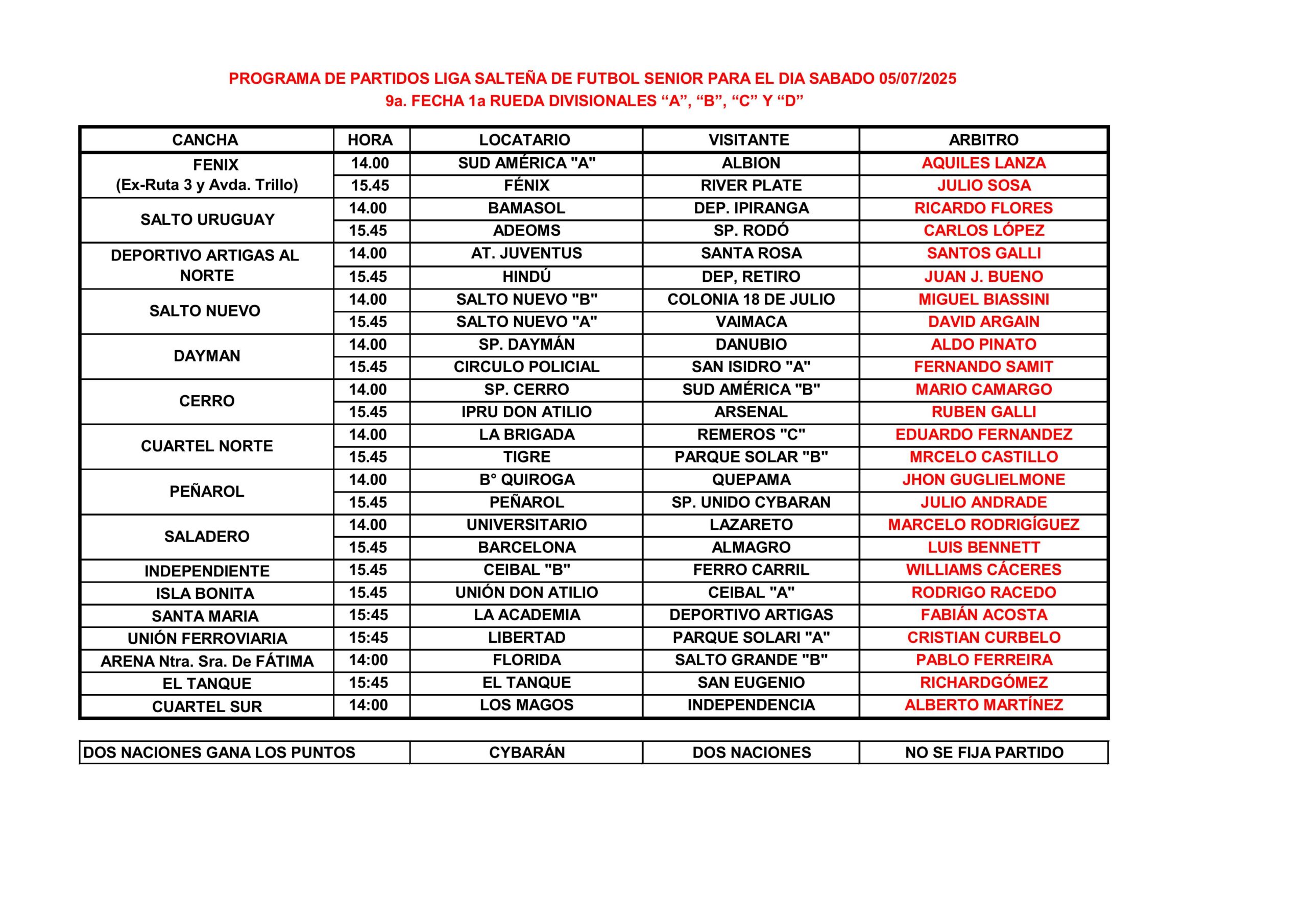 Programa de partidos de la Liga de Fútbol Senior para este sábado