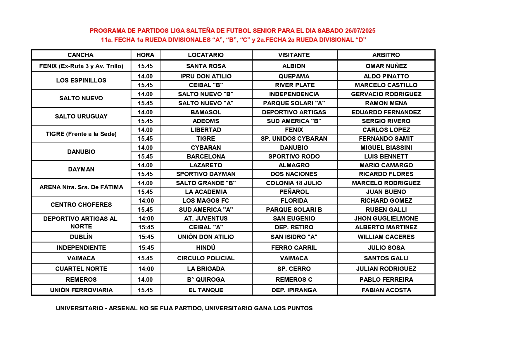 DEPORTESPrograma de partidos de la Liga de Fútbol Senior para este sábado 24 julio, 202526 julio, 2025