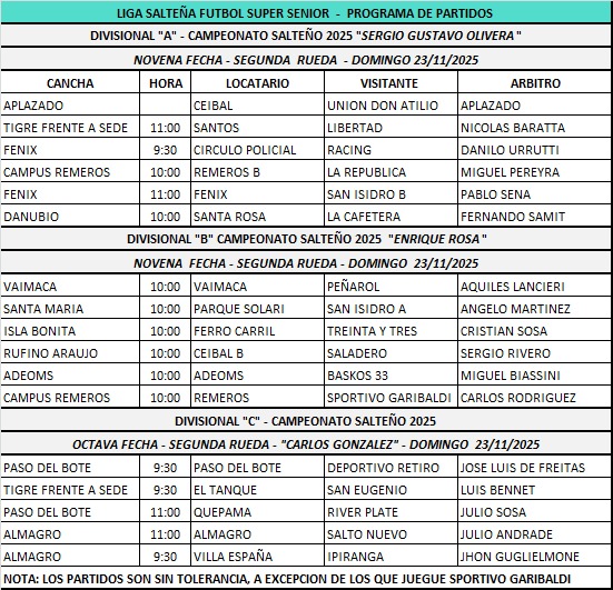 Programa de partidos de la Liga de Fútbol Súper Senior