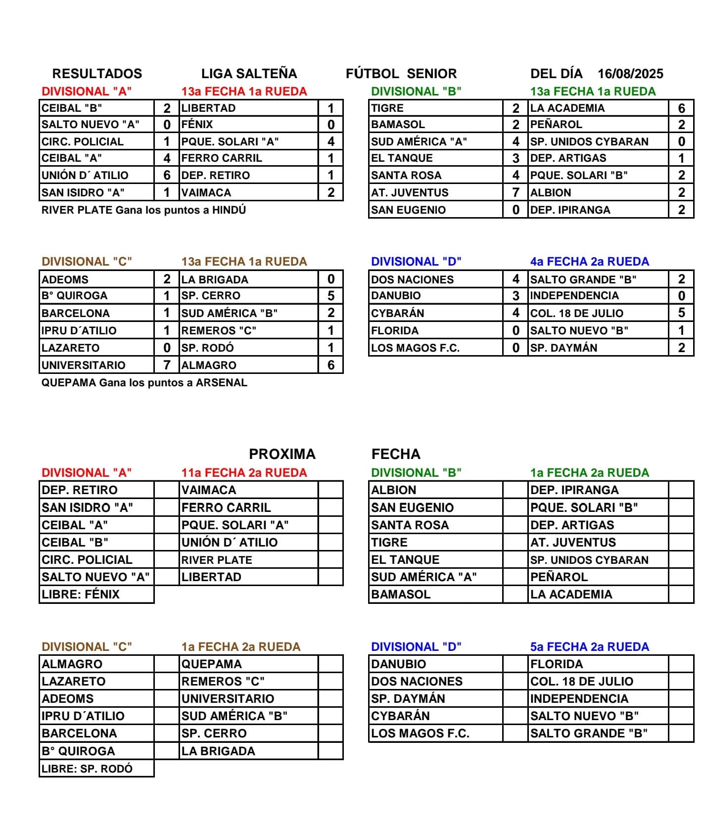 Resultados de la Liga de Fútbol Senior
