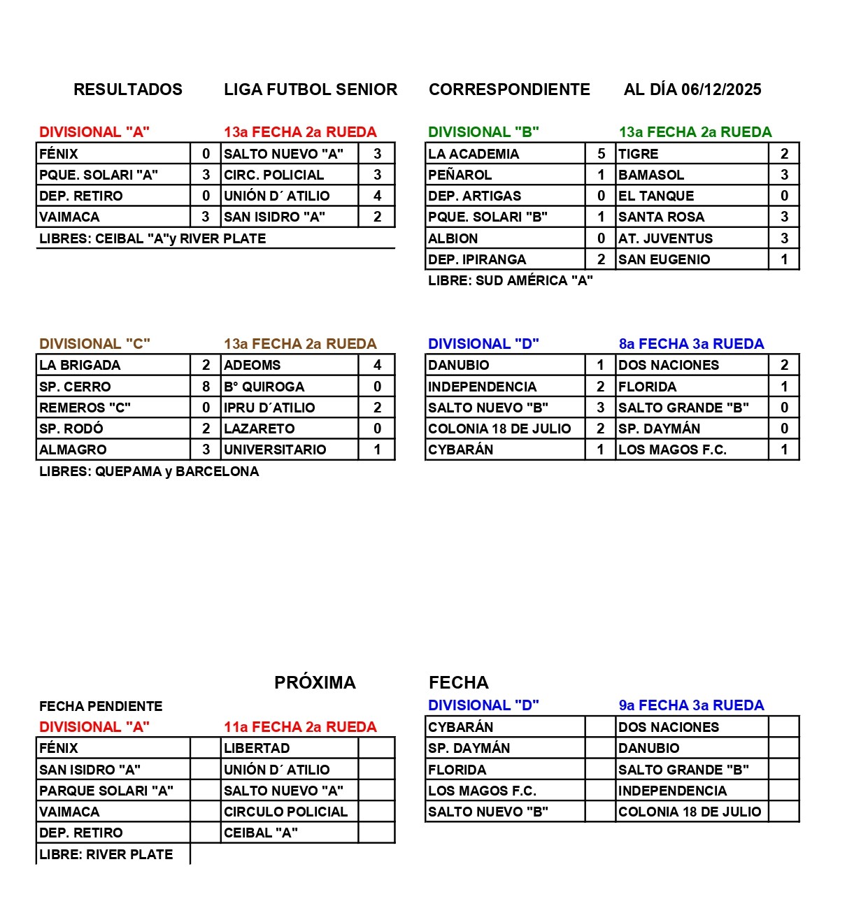 Resultados y posiciones de la Liga de Fútbol Súper Senior