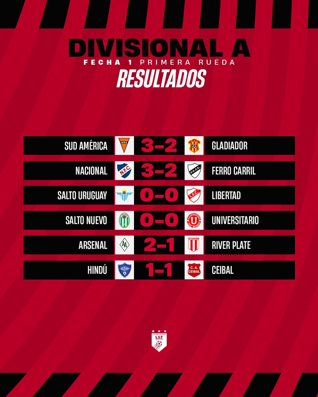 DEPORTESResultados de la primera fecha de la Primera Rueda de la Divisional Primera A 10 agosto, 2025