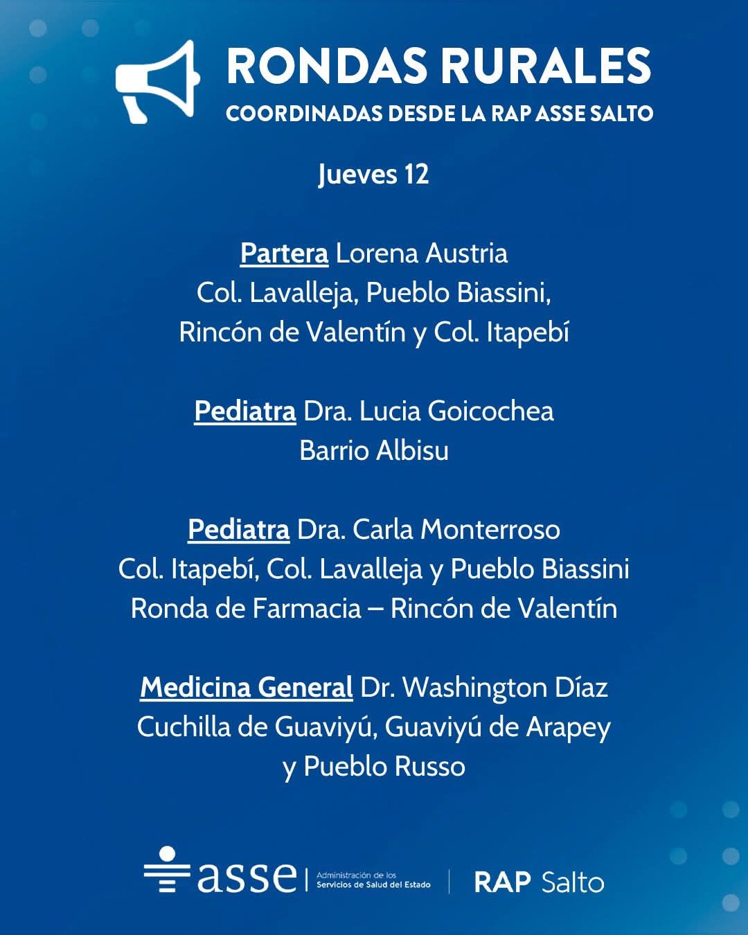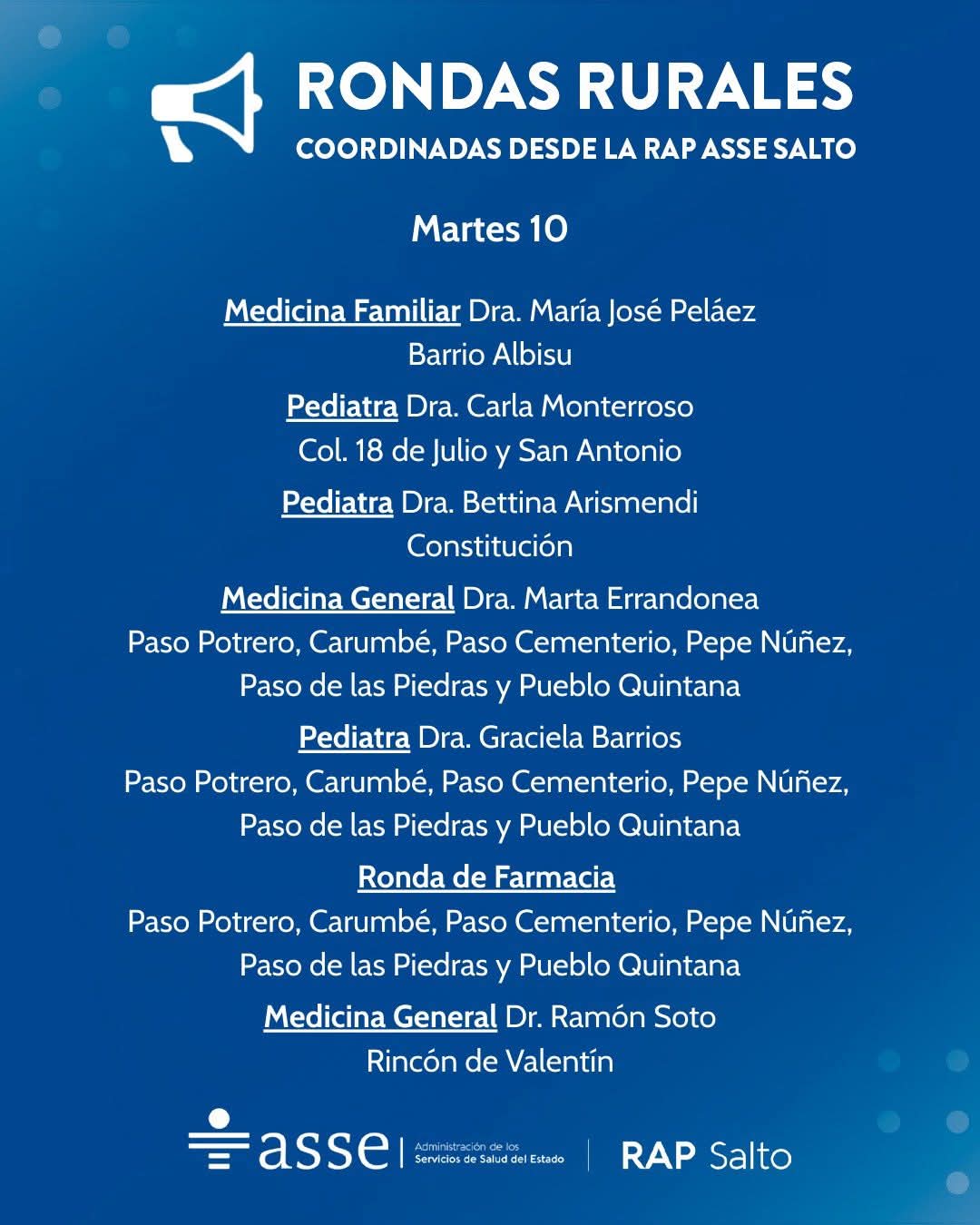 LOCALES / SERVICIOS A LA COMUNIDADRondas rurales de la Red de Atención Primaria ASSE Salto 8 marzo, 20269 marzo, 2026