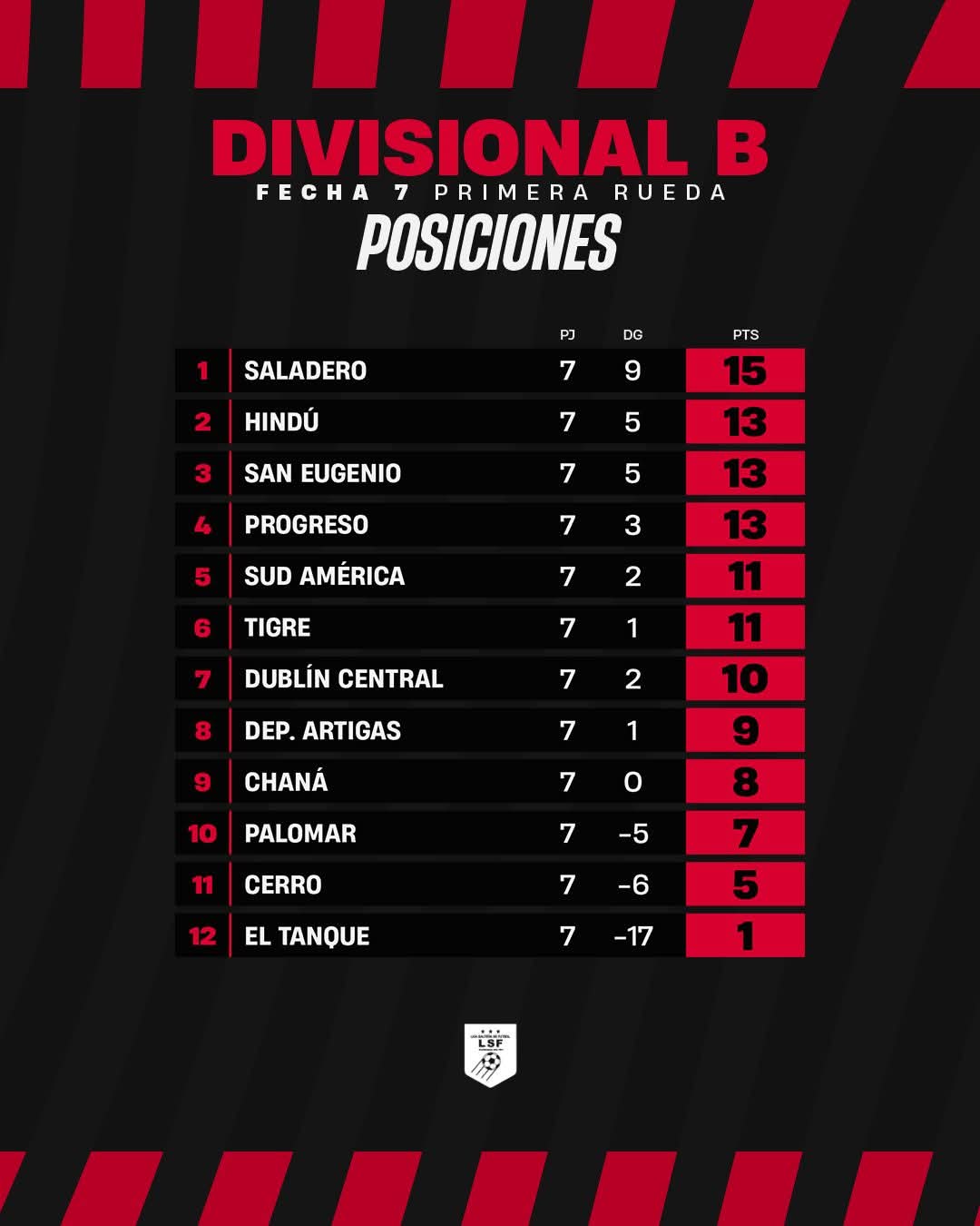 Resultados y posiciones de la Liga de Fútbol Senior