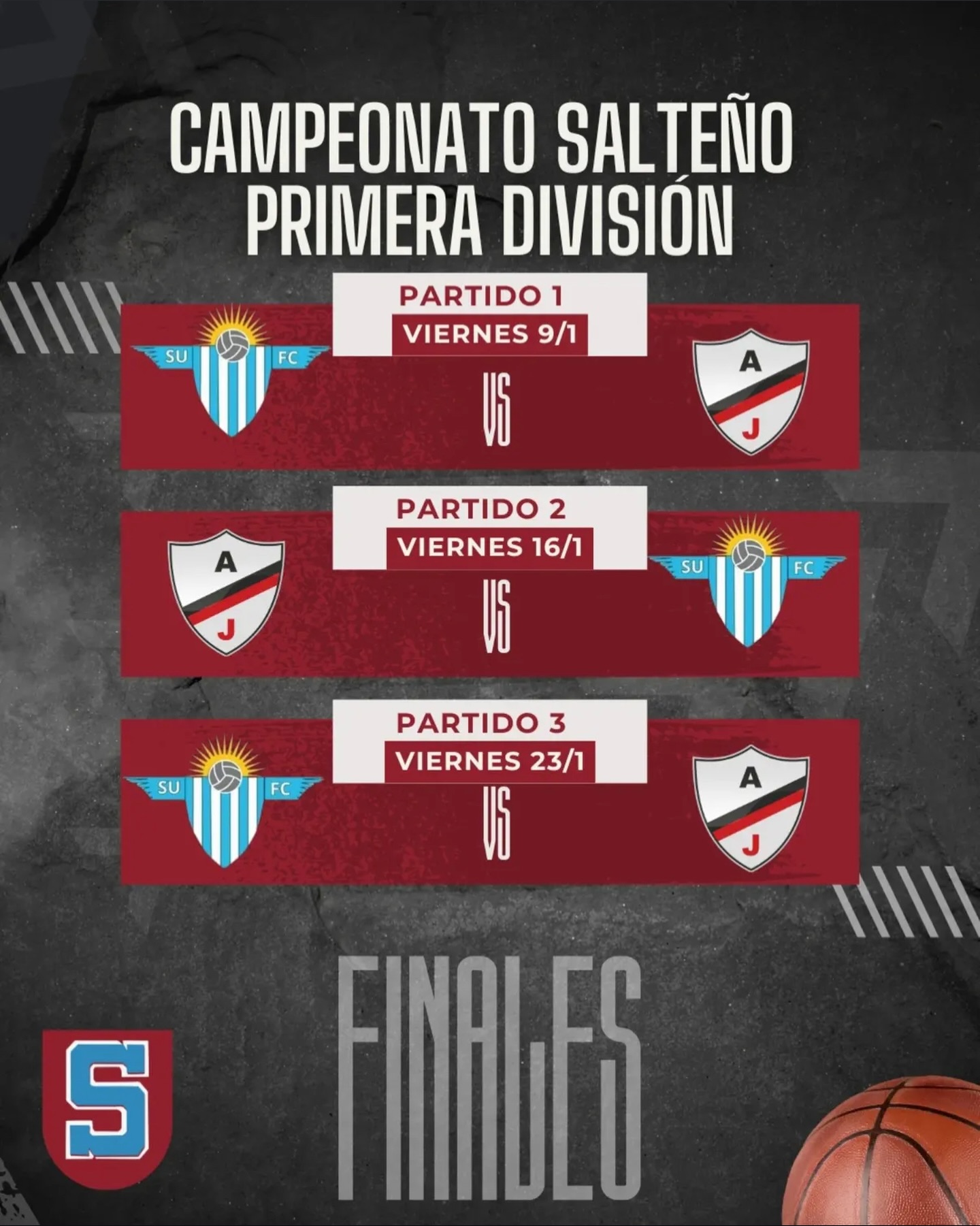 La final del Campeonato Salteño de Básquetbol de Primera División entre Salto Uruguay y Juventus se disputa bajo el formato al mejor de cinco partidos, con un calendario ya establecido que puede extender la definición hasta fines de enero.