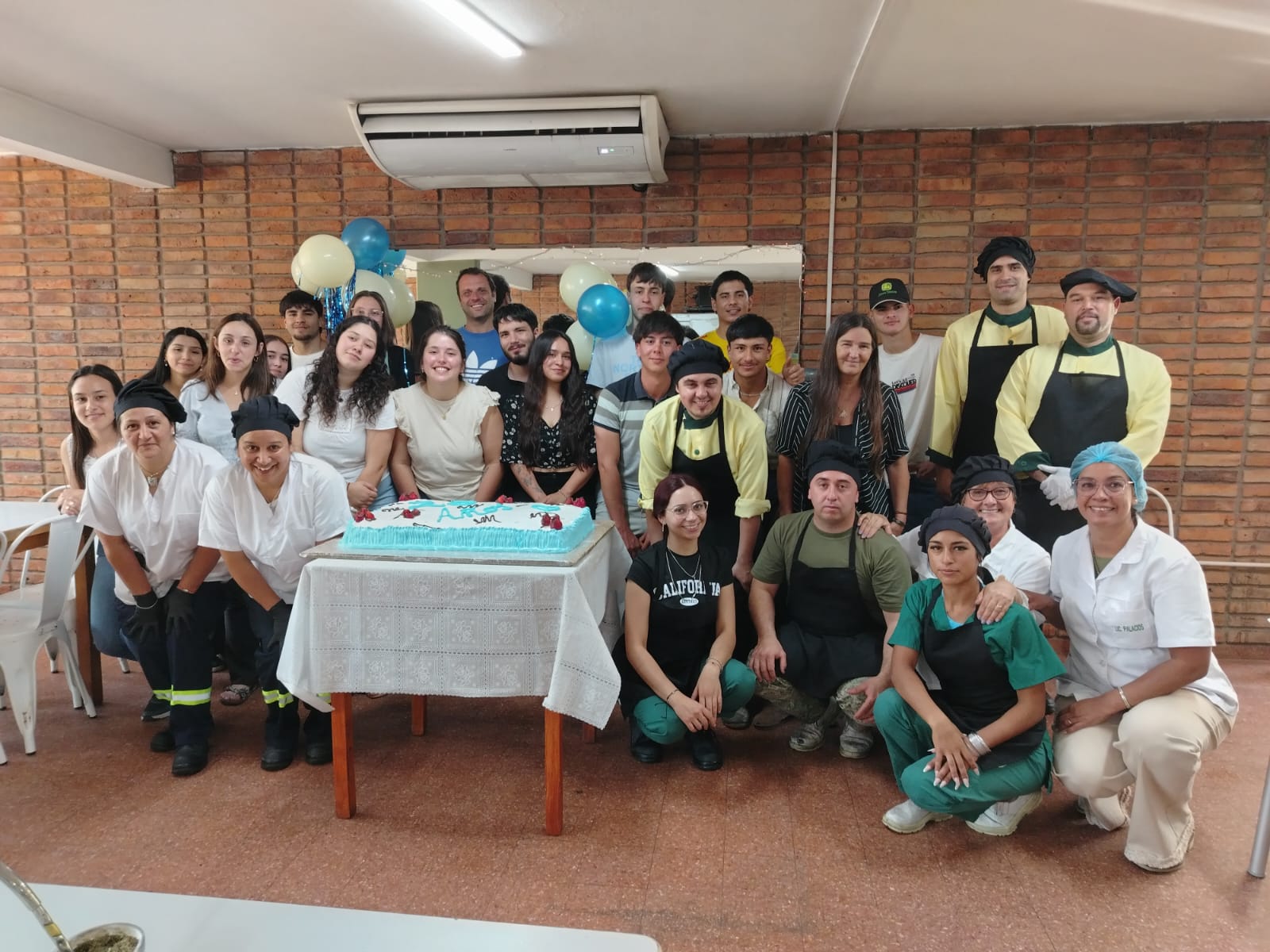 La nutricionista de Bienestar Universitario, Lic. Agustina Palacios, participó de la instancia junto a estudiantes, personal del comedor, la directora de Desarrollo Social de la Intendencia de Salto, Lic. María Eugenia Taruselli, y el director interino de la sede Salto de Udelar, Arq. Rogelio Texeira. En un ambiente de camaradería, se compartió un momento de reconocimiento al trabajo sostenido y al rol fundamental que cumple el servicio en el bienestar cotidiano de la comunidad universitaria.