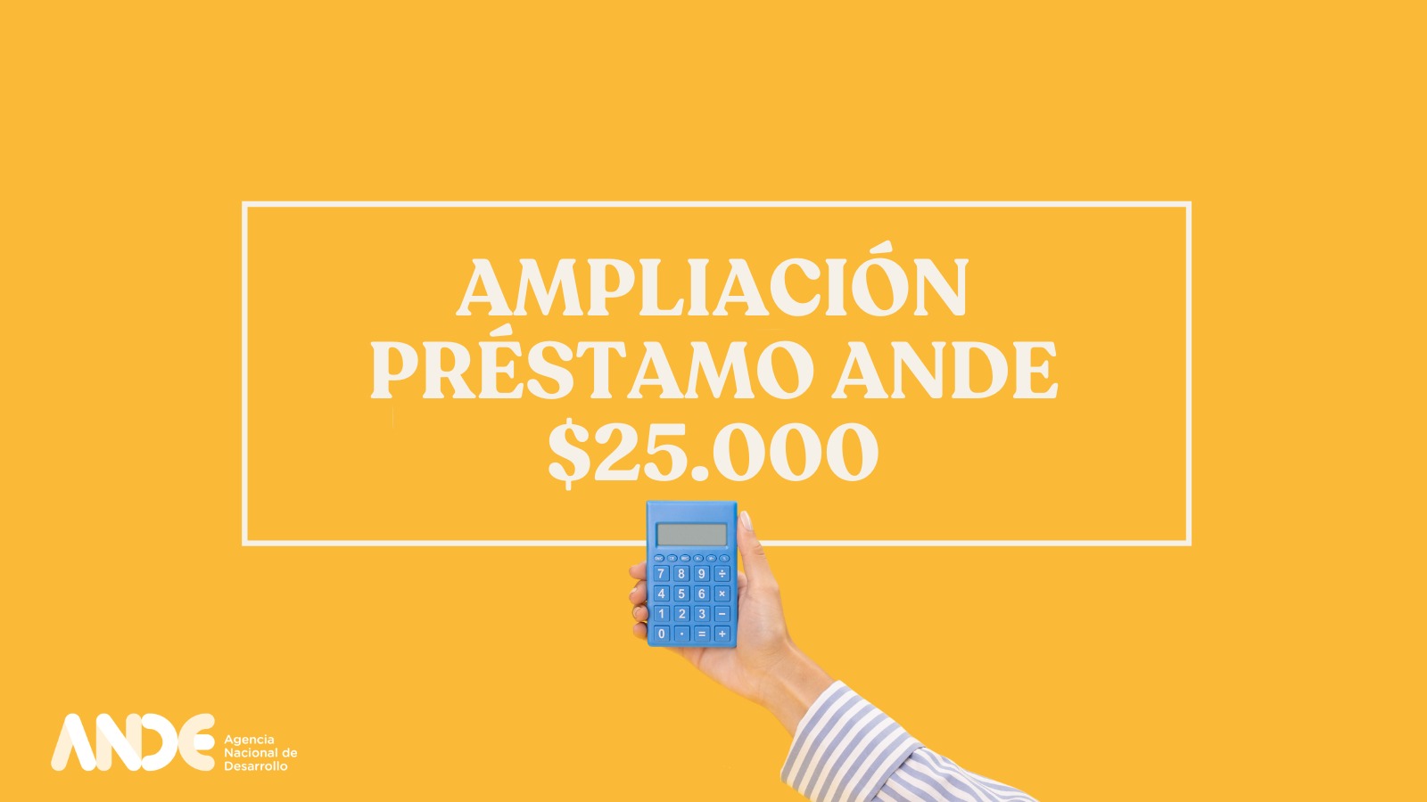 Este préstamo de ANDE a tasa 0%, es de hasta $ 25.000 y se devuelve sin ningún tipo de interés, en pesos, a partir de febrero del 2022, en 24 cuotas. Se podrá solicitar hasta el 30 de setiembre en las redes de cobranza de todo el país, y se puede cobrar en su totalidad, o en partidas de $10 mil y/o 15 mil, si no desean solicitar el total. Para recibir el préstamo las empresas deberán estar activas ante el BPS al 27 de mayo de 2021 con al menos la presentación de una nómina en el período abr/2020-mar/2021.